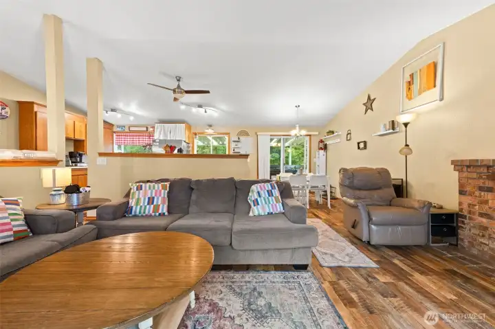 Price Reduction! Don't Miss Out on this spacious, sunny, and surrounded by nature—this home sits on a gorgeous .67 forest-fringed acre that feels like your own private retreat! Step inside to a beautifully remodeled kitchen featuring quartz countertops, stainless steel appliances, and a charming garden window perfect for herbs, flowers, or morning coffee vibes.The open great room stuns with cathedral ceilings and a cozy wood-burning stove, flowing effortlessly out to a huge entertaining deck—ideal for summer BBQs or relaxing under the trees. With generously sized bedrooms, a spacious primary suite, a remodeled family room, and an oversized garage/shop, there’s room for everyone and everything.All of this just minutes from Olympia + Lacey amenities with an easy commute to JBLM—space, style, and location all in one!