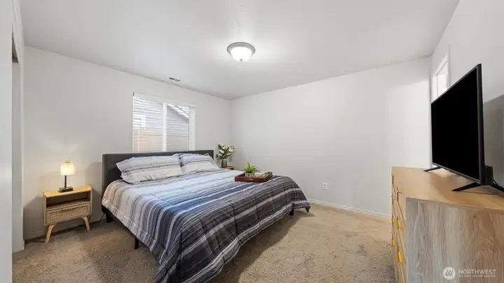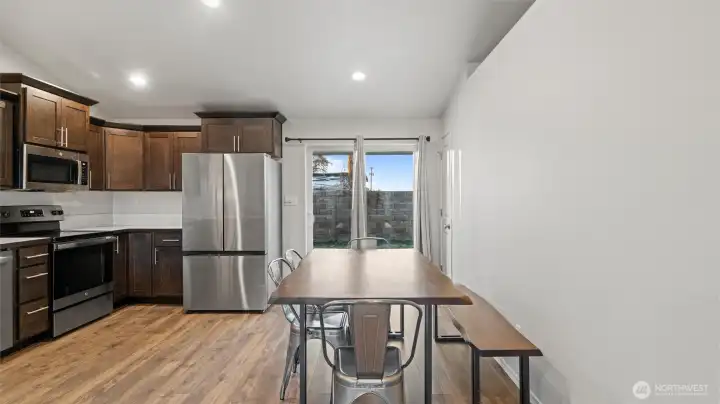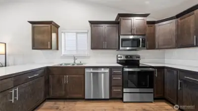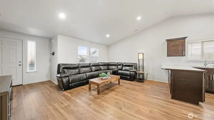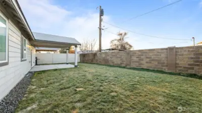 Better than new rambler includes window coverings and a fully fenced and landscaped backyard with underground sprinklers on a timer. This home features a vaulted great room and an open kitchen layout that includes a breakfast bar with cabinets on both sides. Kitchen includes upgraded SS appliances and matching cabinet hardware. Flooring was upgraded to engineered laminate that sprawls from the entry through the livingroom and kitchen. The 3 bedrooms have carpet with an 8lb carpet pad. Other thoughtful touches include an insulated garage and garage door, a designated outlet in the garage for your freezer, a covered back patio with recessed lighting, and wiring for a future ceiling fan. Also, there is an outlet in the livingroom wall to hang your TV and hide the cords and elongated toilets. The primary bedroom has a large closet and an ensuite bathroom. This home is located a few blocks from the neighborhood park and playground and is only minutes from shopping and Highway 17.
