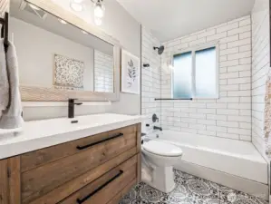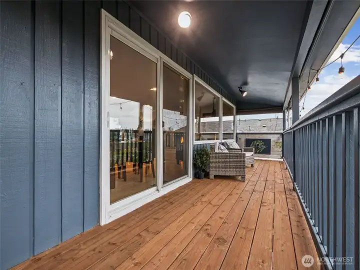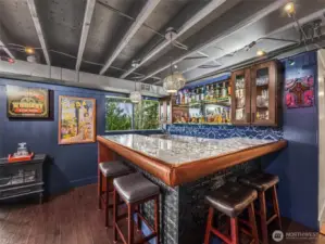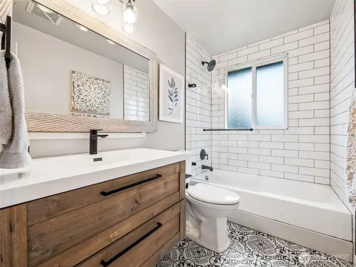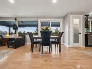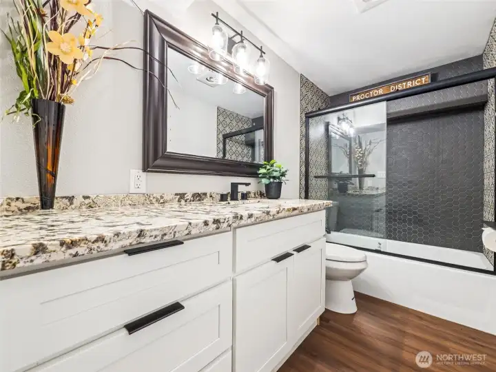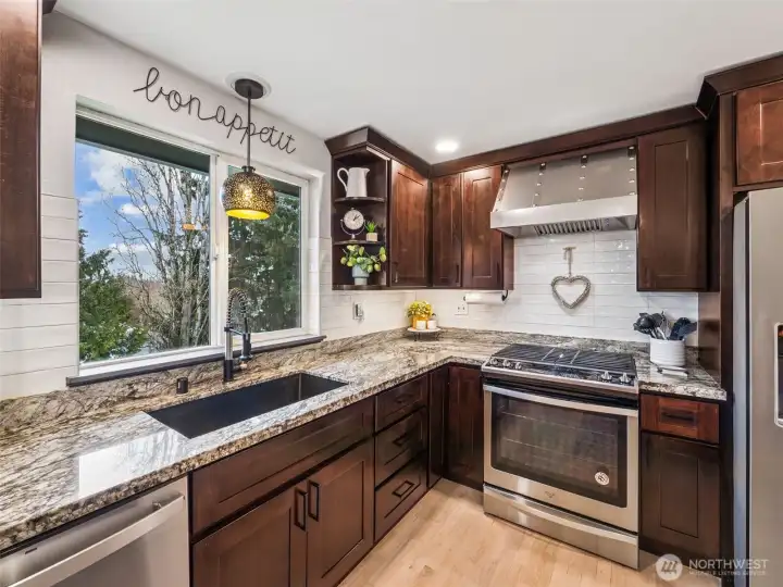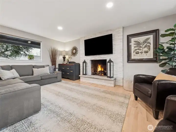 Beautifully remodeled North Tacoma home featuring a bright, spacious open floor plan—an exceptional home for entertaining. The stylish kitchen showcases a tile backsplash, granite countertops, stainless steel appliances, and eat-in island. Stunning hardwood floors throughout complement the living room with a gas fireplace and large deck with large territorial views, ideal for seamless indoor-outdoor gatherings. One bedroom plus primary suite on the main level offers walk-in closet, double vanity, oversized shower, and its own slider opening to a private outdoor sitting area and hot tub. A secret retreat. Downstairs provides outstanding flexibility with a second fireplace, built-in bookcases, and a classy wet bar with wine fridge, perfect for hosting, relaxing, or game day gatherings. This space could also serve as a family room or media room. A sliding glass door leads to a tiled patio, extending the entertaining space outdoors. The lower level also includes 2 additional bedrooms, an office/den, laundry room, and a full bath. Outside, enjoy a very large fully fenced backyard, covered back porch, hot tub area, storage shed, RV/boat parking, electric car charger, large driveway, and a two-car garage. This home truly has it all—don’t miss it!