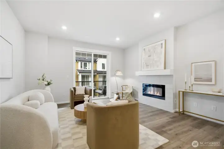 Welcome to this almost-new townhome at Woodside by Taylor Morrison, where modern design meets everyday comfort. The entry level features a versatile den—perfect for a home office—along with a convenient powder room. The light-filled main level showcases an open-concept kitchen with a central island and gas range, flowing seamlessly into a functional dining area and spacious living room. Step outside to a private covered deck with an open view—ideal for morning coffee or year-round relaxation. Upstairs, the top level offers a quiet retreat with a laundry area and two generous suites, including a primary suite with dual vanities and a walk-in shower. Complete with a 1-car garage, EV charger and smart-home features, this home is just minutes to Costco, Downtown Redmond, the Microsoft campus, and Downtown Bellevue. Set in a quiet, thoughtfully designed community surrounded by natural areas and top-rated schools, it delivers the perfect balance of comfort, lifestyle, and convenience.