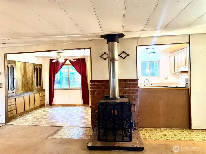 This 3bedroom 2bath home sits on .7acres.Master bedroom with master bathroom on one side of home. This home needs a little TLC, your Imagination awaits this open floor plan. Several outbuildings, Wrap around driveway, heavenly wooded double lot. New heating system installed.