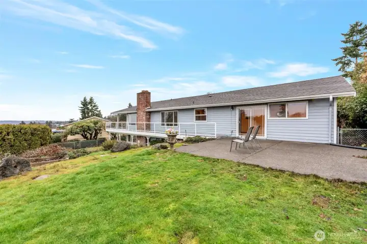 Distinguished brick home with expansive Puget Sound views and unforgettable sunsets from the wraparound entertainment-size deck. Ideally positioned for western exposure, the home is bathed in natural light throughout the day. 5 bedrooms, 2.5 bathrooms. Interior features include maple hardwood floors, slate tile entry, custom cabinetry, stainless steel appliances, and tile-finished bathrooms. Comforts include vinyl windows, Andersen sliding glass doors, air conditioning with a heat pump, and a main-floor gas fireplace. Set on one of the largest lots in Marine Hills, with a huge beautiful backyard that provides space to relax, entertain, and enjoy the outdoors. A clean, concrete community trail with handrails which leads directly to the Redondo Boardwalk and Beach, making Puget Sound adventures part of everyday life. Then top it all off with a 3 car garage!