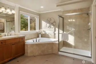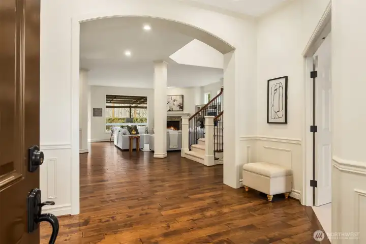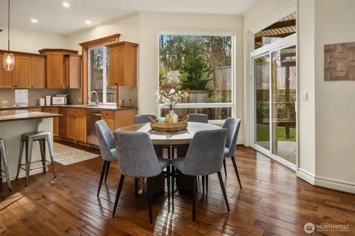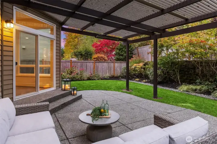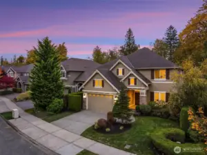 Timeless William Buchan quality shines in this stunning Trossachs home with Cascade mountain views. A gracious entry opens to rich wide plank hardwoods, signature Buchan craftsmanship, warm interiors, and an exceptional floor plan ideal for daily living and entertaining. The chef’s kitchen features abundant custom cabinetry, double ovens, granite slab counters, a walk-in pantry, a 5 burner gas cooktop with hood, and custom tile backsplash. The coveted layout offers four bedrooms plus a bonus room, three full baths, and an upstairs laundry thoughtfully divided into two private wings. The spacious primary suite overlooks a lush, landscaped backyard oasis. Year round outdoor living awaits with a motorized custom patio cover with louvers. Open the louvers to let in sunshine or adjust for shade and shelter during Northwest evenings (with built-in Bromic heaters) - perfect for gathering, relaxing, and entertaining in every season. Additional highlights include central A/C, a tankless water heater, EV charging, and a three car garage. Trossachs is a beautifully designed community offering acres of parks, playgrounds, sports courts & scenic nature trails + top-rated Cascade Ridge Elementary School. I-90, tech hubs like Microsoft and Amazon + endless recreation - hiking, lakes, and skiing - are all just minutes away. Preinspected.
