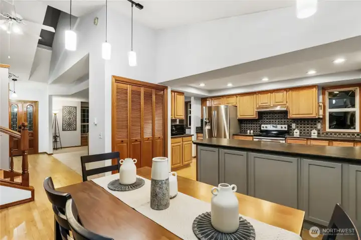 Welcome to this charming tri-level home with standout curb appeal in desirable Sandy Hook, ideally positioned near both the Bainbridge and Kingston ferries for easy access and commuting. Inside, a warm and inviting layout blends classic character with thoughtful updates throughout. The refreshed kitchen features stainless steel appliances, ample cabinetry, and a seamless connection to dining and living spaces, ideal for everyday living and entertaining. Three comfortable bedrooms are paired with 2 updated baths showcasing beautiful tile finishes. The spacious primary suite offers a private en-suite bath and generous walk-in closet, creating a relaxing retreat. A dedicated craft room adds flexible space for hobbies, projects, or a home office. Outdoor living is a highlight with expansive front and back decks, completely rebuilt in November 2019, and designed for gatherings and relaxing evenings. A three-car garage provides excellent storage and versatility. Major improvements include a new roof installed in January 2017, offering added peace of mind. Close to beaches, parks, and local amenities, this inviting property offers comfort, convenience, and Northwest charm in a sought-after setting.