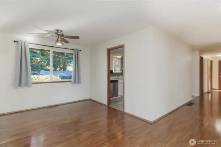 This updated rambler sits on a large flat lot & offers an over 850sqft carport behind a brand new wood gate. Featuring refinished hardwoods, the living room has a wood stove w/ blower, separate dining room area & brand new french doors leading out to the 400+sqft covered patio. Updated kitchen featuring new countertops, updated SS appliances including brand new stove. Both the primary and hall baths have been completely renovated: New tile flooring, vanities, toilets & custom tile wrapped showers w/ built in soap shelves. All 3 bedrooms are a good size. Don't miss vinyl windows throughout the home. Extra deep garage w/ workbench & shelving newly painted including the concrete. Much of the home features new paint. Bring your RV, boat & your hot rod as the massive carport has room for all. Gorgeous new gates allow access from either side. Plenty of room for gardening & storage out back.