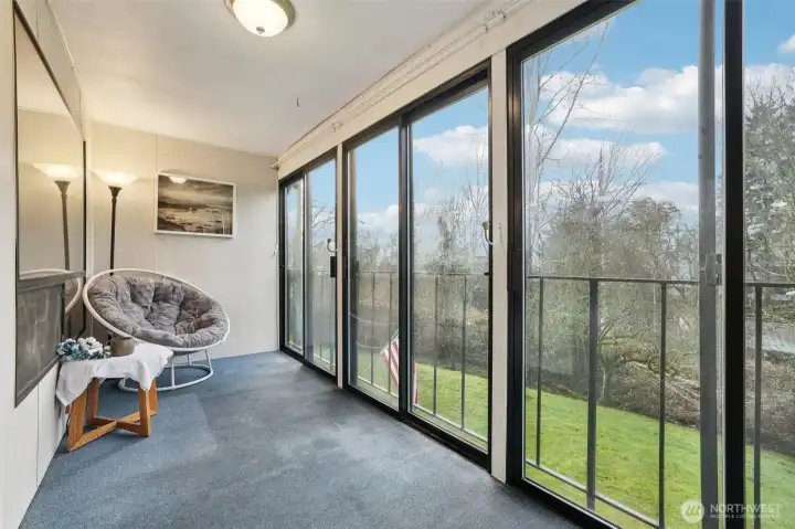 Welcome to Sunset Plaza Condominiums! This spacious and updated 2-bedroom, 1.75-bath condo offers 1,046 sqft of single-level living with scenic views of Veterans Memorial Park. The large living room centers around a cozy fireplace and extends into an enclosed sunroom that adds additional year-round living space. The functional layout includes a spacious kitchen with ample cabinet storage, a separate dining area, and a full laundry room. The primary suite features a walk-in closet and a private ¾ bath. You'll also love the bonus storage room—perfect for tools, bikes, or crafting. Two reserved parking spots, community amenities like pool, tennis court and gym, making this home an ideal choice. Located in Tacoma’s desirable north end, near shops, parks, and highways. condo association covers everything except electric. Affordable, spacious, and move-in ready — this home checks all the boxes!