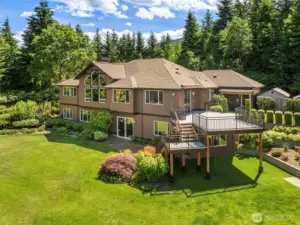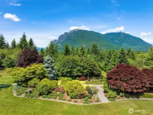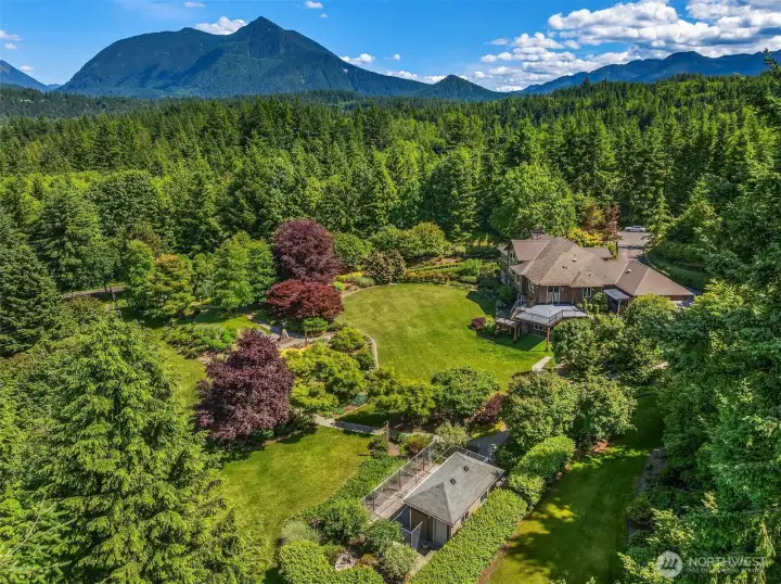 A Cascadian Haven // A rare opportunity to live immersed in the natural splendor of the Cascade foothills, this exceptional residence in North Bend’s coveted Uplands offers a lifestyle defined by space, privacy, and panoramic beauty. Set on nearly five arboretum-like acres with sweeping, unobstructed views of Mount Si, the 5,100+ square foot rambler with daylight basement captures the essence of Pacific Northwest living—where forest, mountain, and sky converge in perfect harmony. Surrounded by evergreens and curated native landscaping, the property feels worlds away, yet remains just minutes from downtown North Bend’s amenities. Thoughtfully remodeled with both elegance and functionality in mind, the home unfolds through expansive, light-filled gathering spaces designed for connection and comfort. Vaulted ceilings, walls of windows, and warm natural finishes frame the breathtaking scenery at every turn. The open-concept main living areas flow effortlessly into a beautifully appointed kitchen. The flexible floor plan accommodates a variety of lifestyles, offering dedicated spaces for remote work, fitness, creative pursuits, or multi-generational living. The daylight basement extends the home’s livability with generous bonus areas, guest quarters, and seamless access to the outdoors. Expansive decks wrap the home, inviting you to slow down and savor morning coffee with the mountain, al fresco dinners at sunset, and peaceful evenings beneath a canopy of stars.