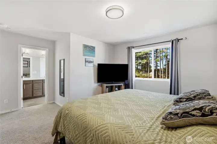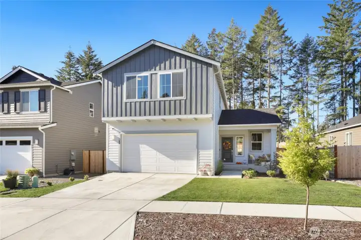 Beautiful 2024 home on one of the neighborhood’s largest lots! Better than new, this light-filled home offers a fully fenced backyard backing to a serene tree line for added privacy. An oversized covered front porch creates a welcoming first impression, while the community offers endless outdoor enjoyment with Huff N Puff trails, disc golf, and pickleball courts. Inside, the main level features an open-concept layout with stainless steel appliances, quartz countertops, and an eat-up peninsula—perfect for entertaining. The living room flows seamlessly to the private backyard through a sliding glass door. Upstairs, retreat to the spacious primary suite with ensuite bath and walk-in closet, plus two additional bedrooms, a stylish loft for flexible living, and a dedicated laundry room. Set within a charming, amenity-rich neighborhood, this home perfectly blends modern design, comfort, and convenience.