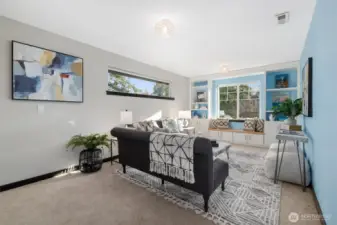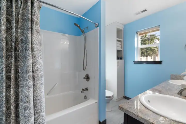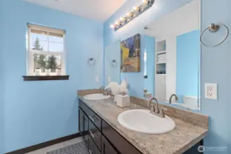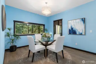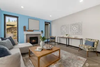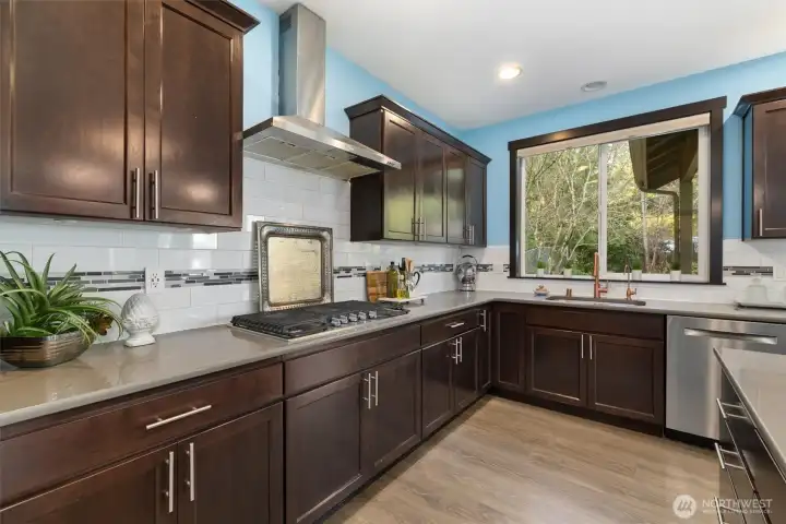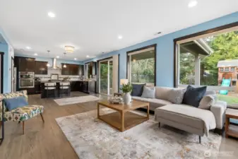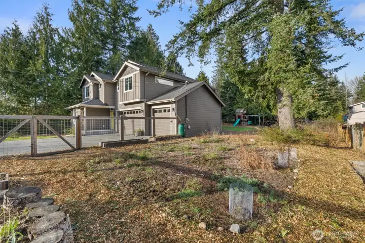 Enjoy coming home to this thoughtfully designed 4BR, 2.75 BA (Septic approved for 3BR) residence offering modern Northwest living in a private, spacious setting. The open great room concept creates an easy flow for everyday living and entertaining, featuring a gourmet kitchen with generous eating space and a fireplace-anchored living area that opens to a large covered patio for year-round enjoyment. The main level also includes a formal dining area and a versatile office or den with an adjacent ¾ bath, all complemented by beautiful vinyl wood flooring throughout. Upstairs, the spacious primary suite features cathedral ceilings and a five-piece bath, accompanied by two additional bedrooms, a Recreation/Media and a bonus room providing excellent flexibility for work, play, or guests. Central air conditioning, two EV charging outlets, generator hookup, and a roomy three-car insulated garage add comfort and convenience. The large lot offers garden space, fruit trees, berry bushes, and a play structure, completing this inviting and turnkey property.