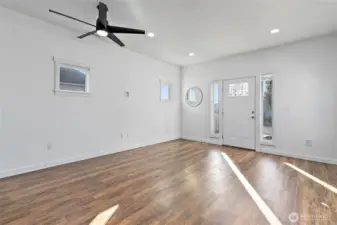 Welcome to 825 E 55th Street, a thoughtfully designed new-construction home completed in 2023, offering modern comfort, efficiency, and everyday convenience in Southeast Tacoma. This two-story residence provides 3 bedrooms, 2.25 bathrooms, and 1,356 square feet of bright, well-planned living space on a low-maintenance lot. The main level features an open-concept layout that connects the living room, dining area, and kitchen, creating an inviting setting for gatherings or relaxed daily living. The kitchen includes ample cabinetry, durable surfaces, and a layout that maximizes function and flow. Large windows throughout fill the interior with natural light. Upstairs, the private suite includes an attached contemporary bathroom, while two additional rooms and a full bath offer versatility for guests, workspace, or flexible living needs. A main-floor powder room and dedicated laundry area add to the home’s practical design. Additional features include an attached garage, energy-efficient heat pump, cement plank siding, contemporary finishes, and a composition roof. Convenient access to I-5, parks, local amenities, dining, and Tacoma’s vibrant downtown. A strong option for those seeking modern construction, efficient layout, and a location that blends neighborhood comfort with urban accessibility.