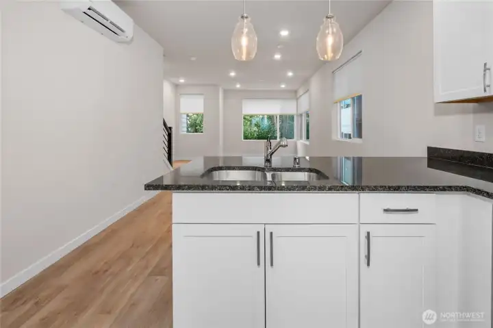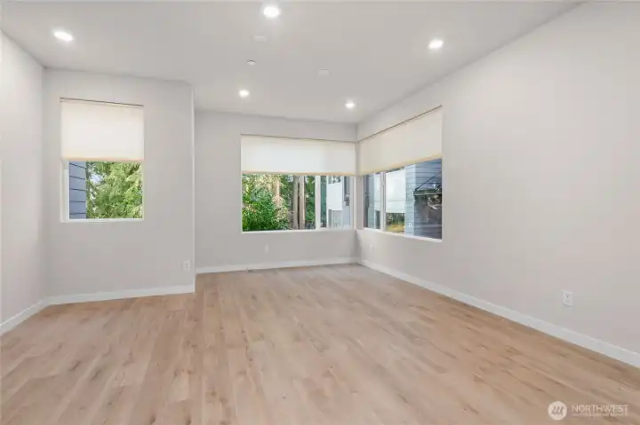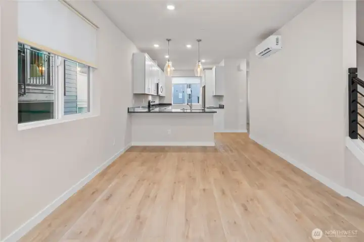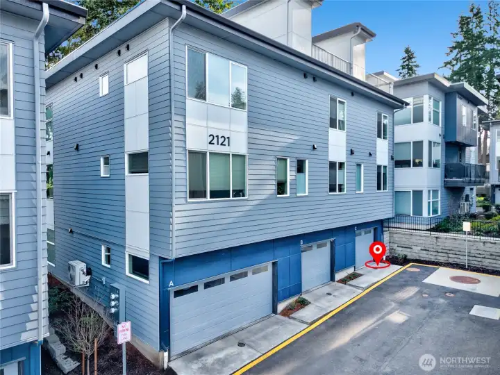 Experience urban luxury in this new, never-lived-in and move in ready townhome: the only end-unit in the community featuring a private rooftop oasis and a short walk to light rail. Full of natural light from east-facing oversized windows which provide satisfying territorial views. The open-concept interior is designed for seamless, modern living. The upper level hosts a serene primary suite with a spacious walk-in closet and ensuite bath, alongside a secondary bedroom/ office and dedicated laundry. Modern comforts include minisplit heat and A/C for year-round climate control and an attached two-car tandem garage equipped with an EV charger. Enjoy the convenience of being steps away from the new light rail station and a pet-friendly community complete with its own wooded trail. You'll love the amazing Shoreline schools and the healthy local community that Parkwood provides.