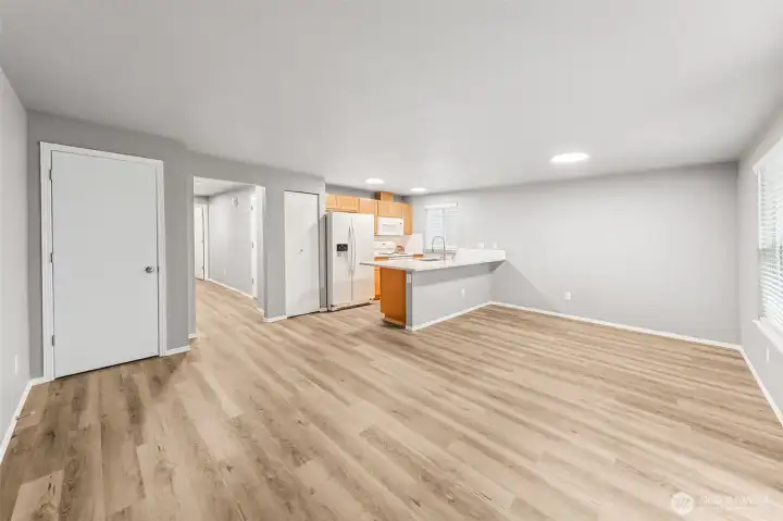 Lives like new without the new price tag! New exterior paint adds to the curb appeal of this beautiful home. With stunning new Quartz counters in the kitchen and bathrooms along with new flooring and fresh paint, this gorgeous updated 3 bedroom home sparkles. The beautiful kitchen with eating bar allows for easy meal prep and ensures that the cook doesn't get left out of the party. You'll also love the pantry for extra kitchen storage. The spacious great room allows everyone to hang out. Upstairs you'll find three bedrooms with a conveniently located full bathroom. No lugging the laundry up and down the stairs, since the included washer and dryer are also located upstairs. As another plus to your budget, there are already window blinds. Freshly fenced backyard with a nice patio as well. This is a great place to live!