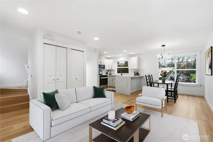 Welcome to this beautifully updated townhome, tucked away on a quiet and private alley. Thoughtfully designed, this home offers a functional layout with three bedrooms and three bathrooms, along with a fully fenced yard perfect for modern lifestyle. Recent updates include brand-new flooring, fresh interior paint, renovated bathrooms, and a upgraded kitchen with repainted cabinetry and a waterfall-edge countertop. Sun-filled rooms and vaulted ceilings in the upper-level bedrooms create a bright, airy, and inviting atmosphere throughout. An attached one-car garage adds convenience, while multiple private patios and nearby Virgil Flaim Park offer a peaceful and comfortable experience. With no HOA dues and no restrictions on short-term rentals, and close to shops, bus lines, and the new light rail, this home is ideal for everyday living or investment.