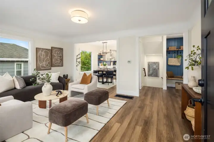Warm, inviting, and thoughtfully updated, this Greenwood Craftsman blends classic character with modern comfort on a generous lot designed to be enjoyed. Offering 4 bedrooms and 3 baths, the open kitchen flows naturally into the dining and living spaces—perfect for both quiet evenings and lively gatherings. The top-floor feels like a private retreat, featuring a sun-filled south-facing reading nook, two bedrooms, and a spa-inspired bath with double vanity and heated floors. The finished basement adds flexible living space with a bedroom, full bath, rec room, and laundry—ideal for guests, work-from-home needs, or movie nights. Recent comprehensive updates, including major systems, reflect a renovation completed with long-term living in mind. Mature landscaping surrounds a large, private backyard—an ideal setting for entertaining, play, or future ADU potential (buyer to verify). EV charging ready. Just steps from Greenwood’s vibrant restaurants, coffee shops, and neighborhood favorites, this home offers a rare blend of soul, craftsmanship, and modern ease.