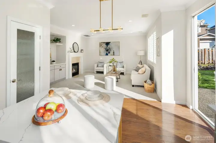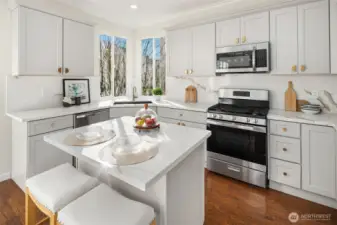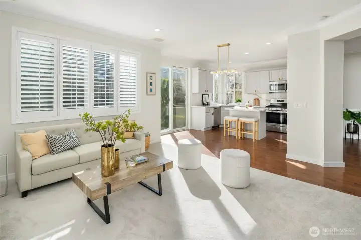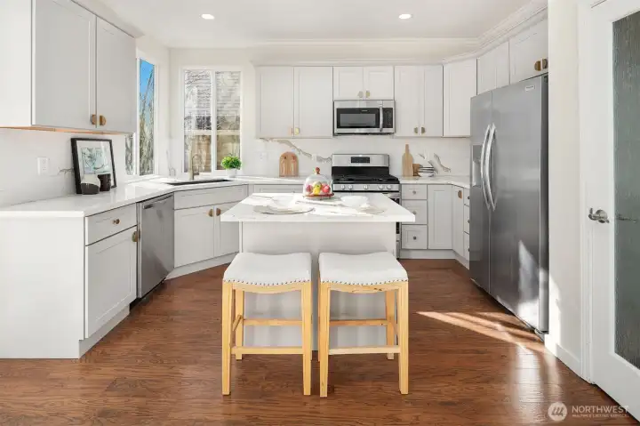 Welcome to this beautifully updated 4-bedroom home in the sought-after Renaissance Ridge community of Sammamish. Situated on a bright and light-filled corner lot, this residence blends timeless elegance with modern upgrades, creating a home that is both stylish and comfortable. The remodeled kitchen is the heart of the home, featuring elegant khaki-gray cabinetry accented with gold hardware, quartz countertops, and a coordinating backsplash—perfect for everyday living and effortless entertaining. Throughout the home, new bathroom vanities, mirrors, and contemporary lighting fixtures add a fresh, cohesive design aesthetic. Fresh interior paint and brand-new carpet provide a crisp, move-in-ready feel. One oversized bedroom offers bonus-room potential, ideal for a media room, home gym, playroom, or flexible living space to suit your lifestyle. Enjoy year-round comfort with A/C. The flat, usable yard is perfect for play, outdoor dining, and gatherings, while the 3-car garage offers ample storage and convenience. All of this is located within the award-winning Issaquah School District and just minutes to parks, trails, shopping, and commuter routes.