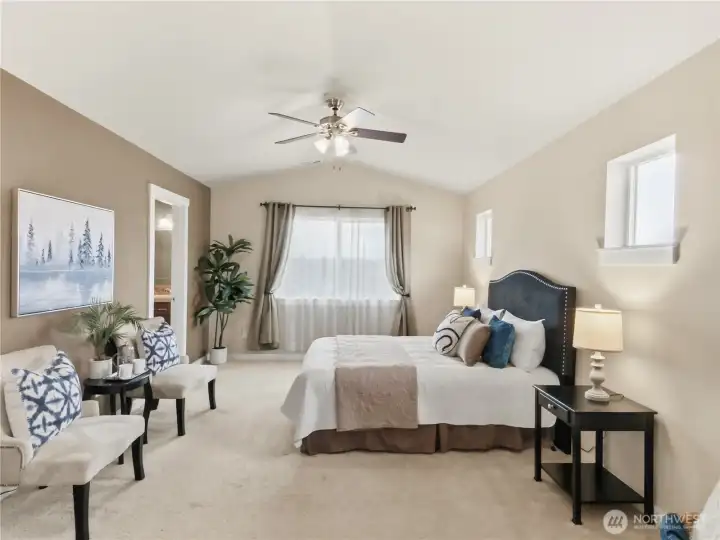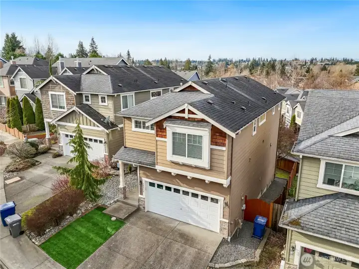 Located in a prime and highly desirable location, this home offers outstanding convenience and comfort. This lovely home offers three bedrooms, 3.5 bathrooms, a loft/Den, spacious bonus room and flex room. The spacious primary bedroom includes double doors, a walk-in closet, and a luxurious en-suite bathroom with a separate shower, soaking tub, and double vanity. All bedrooms are equipped with attractive ceiling fans. The main floor offers a well-proportioned kitchen and dining area that flows seamlessly into the living area with a cozy fireplace, creating a functional and inviting layout ideal for everyday living and entertaining. Enjoy stunning sunsets and outdoor gatherings on the covered deck, perfect for BBQs and relaxing evenings. The lower level features a generously sized recreation room with flexible potential, it can easily be converted into a den, home office, or studio-style room. A full bathroom and direct access to the backyard add extra convenience and functionality. Specially this home offers rare real privacy, as the property does not back onto another home and is instead adjacent to a neighborhood street. Also, ideally located near major freeways, Park & Ride, restaurants, shopping malls, and everyday amenities, this home provides excellent accessibility. With a highly competitive price, this is a fantastic opportunity. Act fast—this could be your home!