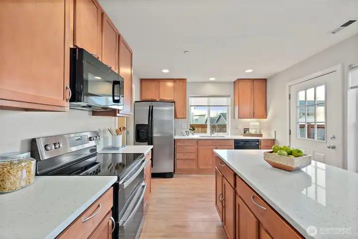 WOW! Do not miss this Beautifully remodeled DuPont home surrounded by nature! the well manicured neighborhood includes miles of walking trails and the incredible 5-acre Chief Leschi Park just across the street. This home is move-in ready w/ new LVP flooring, Quartz counters & updated bathroom's w/ new vanities, flooring and lighting. Upstairs, you'll find three generous sized bedrooms & two full bathrooms. You'll love the primary suite w/ 5-piece bath and large walk-in closet! the Primary bath includes a double vanity, Tile flooring, large soaking tub & glass framed shower. The entertainer in you will enjoy the main level as well w/ a large office/den/4th bdrm + an open concept Kitchen/dining/living rm with walk-in pantry, large island & quartz counters. Out back includes a fenced yard, large deck and the 2-car detached garage, while the front offers additional street parking & everyone's favorite community park (Chief Leshi Park) w/ multiple new big toys, basketball court & tons of space. You'll love the location and short proximity to JBLM, i5 access and the fact that the neighborhood is flanked by two of our regions nicest public golf courses (The Home Course & Eagle's Pride).