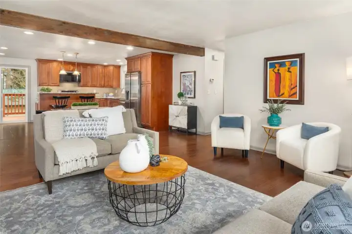 Beautifully updated home in sought-after Northshore School District location, offering the perfect blend of style, function, and indoor-outdoor living. The open-concept main level features rich hardwood floors, abundant natural light, and a remodeled high-end kitchen with custom cabinetry, granite countertops, stainless appliances, and a large center island ideal for entertaining. The spacious primary suite on the main floor provides true one-level living and includes a large walk-in closet and luxurious primary bath with soaking tub and separate shower. Additional bedrooms offer flexibility for guests, home office, or gym. Enjoy year-round comfort with two inviting living areas, including a lower-level family room with a second fireplace — perfect for movie nights, entertaining, or multi-generational living. The main living room showcases a stunning stacked-stone fireplace that serves as a beautiful focal point. Step outside to a huge, fully fenced backyard on a large lot with expansive deck and patio spaces, ideal for summer barbecues, play, pets, and relaxing. Mature landscaping and multiple outdoor living areas create a private retreat rarely found in this price range. Prime location with easy access to parks, trails, shopping, dining, and commuter routes, plus top-rated Northshore schools. Move-in ready with thoughtful updates throughout — this home checks every box for comfort, space, and long-term value.