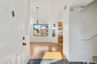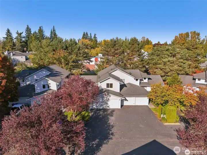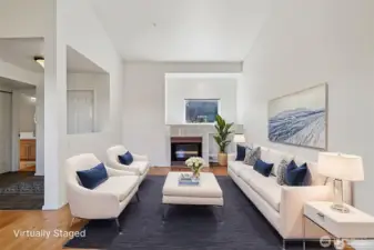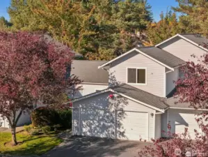 This spacious two-bedroom, 2.5-bath townhome PLUS an office and attached two-car garage offers the perfect blend of comfort and style. Sunlight pours through large windows, highlighting vaulted ceilings, gleaming hardwood floors, and the open kitchen, while a cozy gas fireplace invites you to relax on chilly evenings. Enjoy dining or morning coffee while overlooking the beautifully landscaped backyard. Both bedrooms are generously sized and feature their own baths, and the garage even includes a handy workshop. Tucked away on a private end street, the home is just minutes from shopping, dining, and transit. A well-managed HOA, with rental and pet-friendly policies, makes this a wonderful community and a place you will be proud to call home.