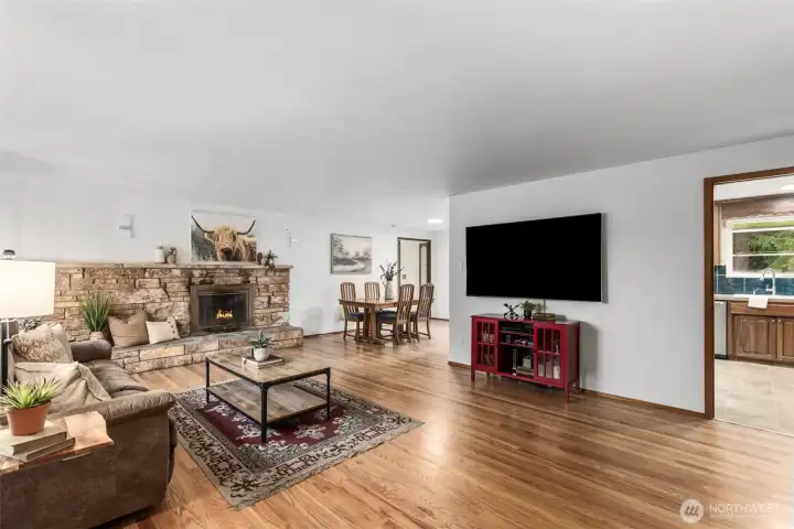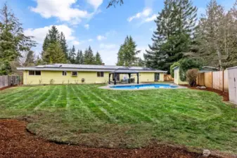 Bring your vision to life in this charming brick rambler nestled on a spacious private lot in Renton (Kent School District). A rare 1,130 sq ft 4-car garage with shop space is a dream for hobbyists or car enthusiasts, while the inviting in-ground pool is ready for endless summer fun or winter plunge. Super-efficient solar panels. Inside, you’ll find refinished hardwood floors, two fireplaces, and a generous primary suite designed for comfort and privacy. 4-bedroom septic, so the secondary bedroom could be converted back to two bedrooms. Whether you're entertaining poolside or enjoying the quiet comfort of a fire-lit evening, this home offers the perfect blend of functionality and retreat.