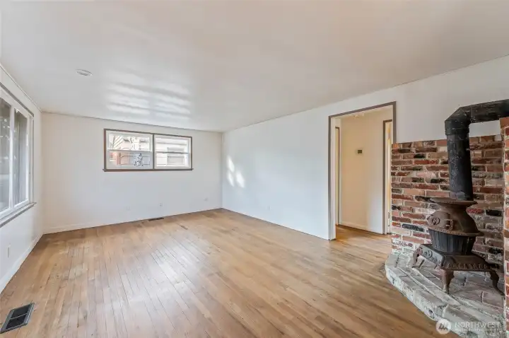 Welcome to this charming 1,066 sq ft, 3-bedroom, 2-bath home built in 1952, nicely located in Wenatchee and full of potential! The home features beautiful hardwood floors, a bright living and dining area with built-in cabinets ideal for pantry storage, and a cozy wood-burning fireplace perfect for relaxing evenings. The primary suite offers a walk-in closet and a private bathroom with shower, creating a comfortable and functional space. Enjoy outdoor living with a covered porch, fenced backyard with sprinkler system, dog run, and a long driveway ideal for RV or additional parking. The 396 sq ft detached garage adds great storage and flexibility, and the roof was updated in 2022 for added peace of mind. This property is a fantastic blank canvas for buyers to add their personal touch while enjoying a convenient location close to schools, parks, shopping, and local amenities. A wonderful opportunity to make this Wenatchee home your own!