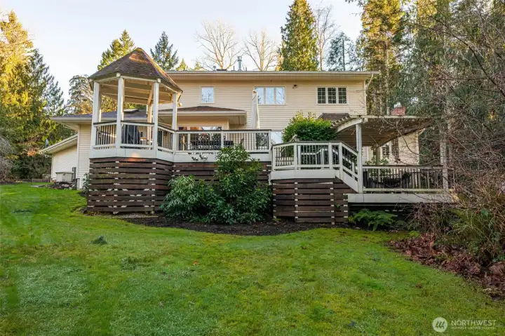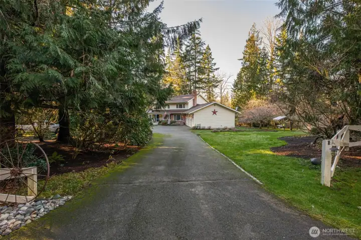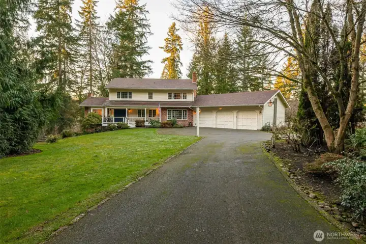 RARE OPPORTUNITY: OVER 5 ACRES, minutes to Redmond, Woodinville & 405. The home boasts over 4000sqft of living space spread over 3 stories, a multi-stall barn, fenced paddocks, a fruit orchard, creek access, a sport court & ALL THE PRIVACY YOU COULD ASK FOR! An inviting covered porch welcomes you home, and the main level reveals a warm living room w/ fireplace, updated kitchen, massive family room, laundry, den & 2 powder rooms. Upstairs are 3 bedrooms and a luxurious primary suite-- complete with double sided fireplace (bedroom/bathroom) and custom closet. The basement features a large gathering room w/fireplace a huge gameroom, extra room with Murphy bed, bathroom, and LOTS of under-house storage. Huge multi-level deck w/ covered areas!