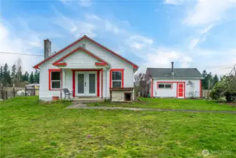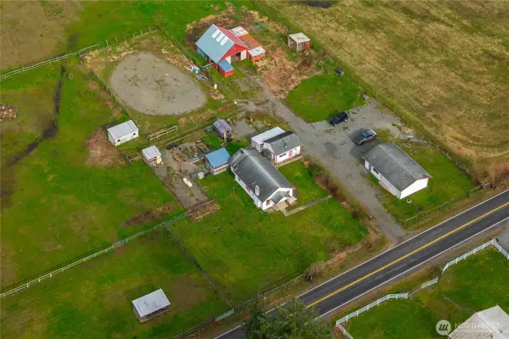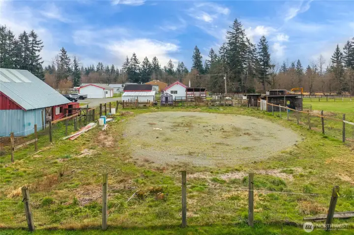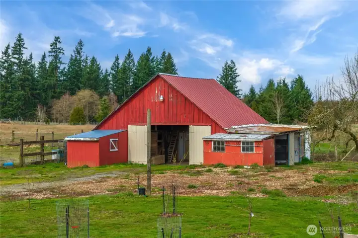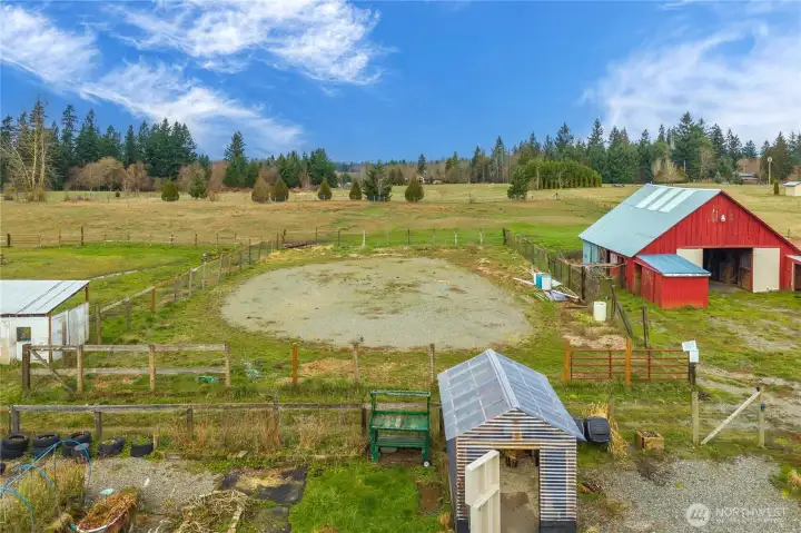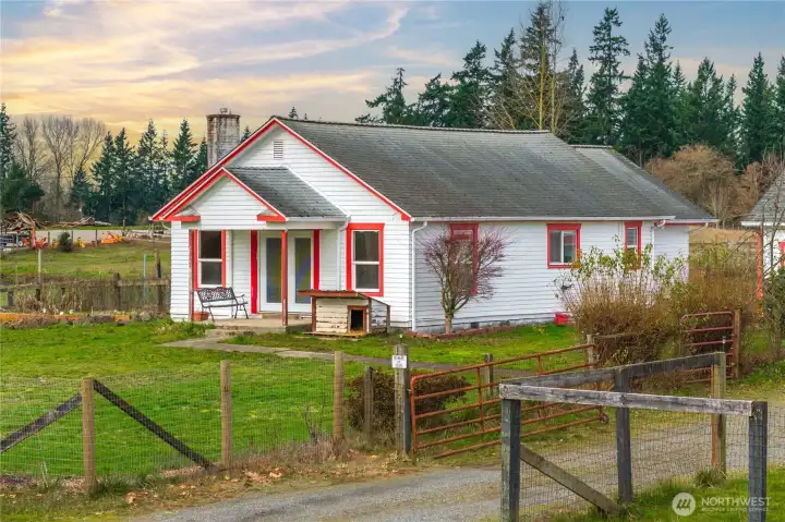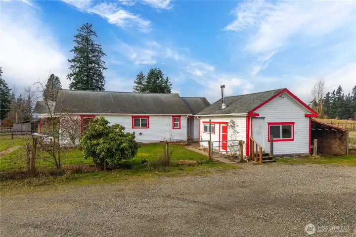 Tucked into a peaceful Enumclaw Plateau setting, this one of a kind Craftsman offers 4.74 level, usable acres and the kind of lifestyle potential that rarely hits the market. Fully fenced and beautifully open, the land is ideal for horses, animals, and hobby farm living, with room to expand, garden, and roam. An insulated barn with a metal roof, stables, and an outdoor arena sets the stage for equestrian dreams, while a large insulated shop with three garage doors and a wood stove is ready for projects, storage, and serious tinkering. The possibilities are endless with a detached garage, RV parking with plug in, a greenhouse, and thriving fruit trees. Fruit trees include pears, cherry, apples and plums. Can your fruit in the barn and store in the canning room! From the back of the property, take in beautiful views of pastures and Mount Rainier, the perfect Pacific Northwest backdrop to your everyday life. Inside, the charming one story home delivers cozy, functional living with classic wood siding, double pane windows, and a warm propane stove. Served by a private well and septic, with Starlink as an internet option, it is country living at it's best. Bonus peace of mind includes a generator setup to run key essentials, including the well pump and hot water, during outages. Space, privacy, practical outbuildings, and endless potential, come experience the acreage and imagine what you can create here.