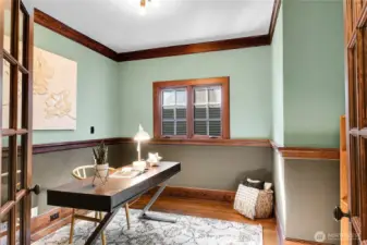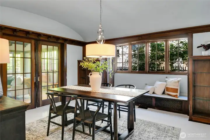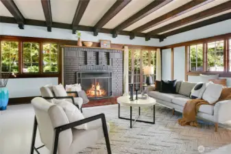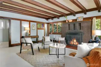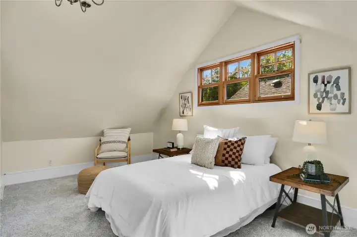 Experience the charm of this unique turn-of-the-century shingle-style home near Volunteer Park. Step onto a tree-lined street aglow with Edison lights and hear the daily chimes of St. Joe’s bell tower. Enhanced in systems, structure, and style, it showcases period details including an extraordinary brick fireplace, original woodwork, wood floors, box-beam ceilings, and a gracious living room with French doors to a private deck. A formal dining room with curved, barrel-vaulted ceiling flows to the remodeled chef’s kitchen with access to a picturesque backyard and sunken patio. Main level offers a versatile den/bedrm, ¾ bath with walk in shower, and large bedroom; upstairs features two bedrooms, full bath, and a family room.