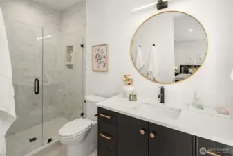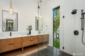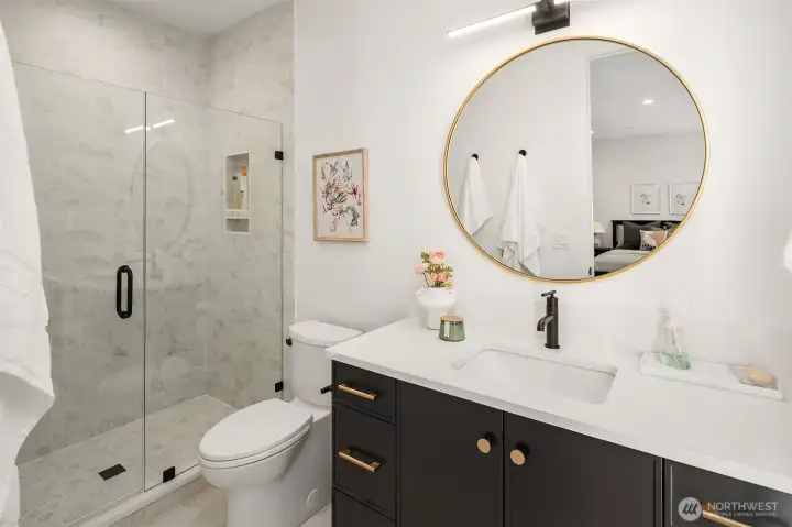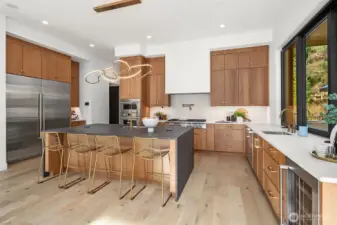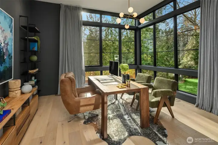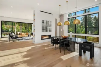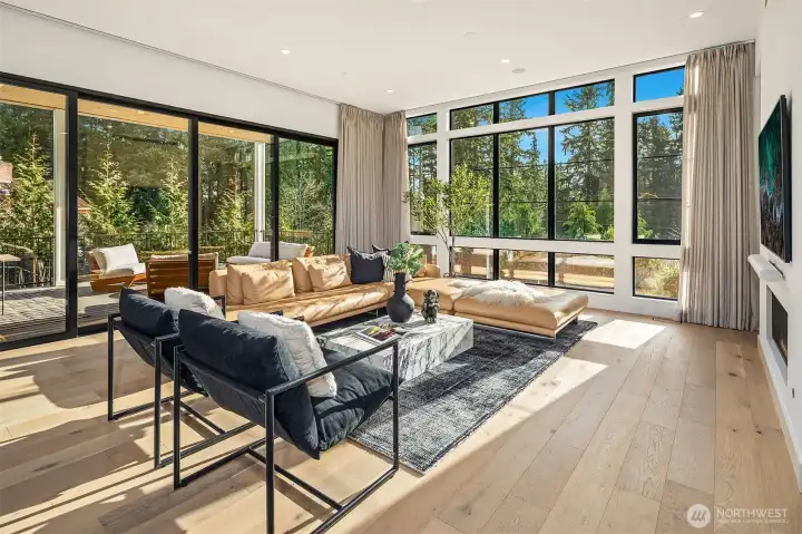 This custom Bridle Trails residence offers a seamless blend of comfort and elevated living, situated on an acre-sized parcel designed to maximize light and functionality. Modern style, sophisticated interiors, expansive windows and vaulted ceilings create an inviting, light-filled atmosphere throughout, with the added opportunity to personalize nearly 1,600 sf of semi-finished bonus space. The main floor is ideal for everyday living and entertaining, centered around a chef’s kitchen with custom cabinetry, Dekton countertops, an oversized island and a professional grade appliance suite including Wolf and Sub-Zero. The kitchen flows into the dining and living rooms, where sliding LaCantina doors open to a covered outdoor terrace and backyard for seamless indoor-outdoor living. A light-filled office offers an inspiring work-from-home space, while a main floor guest suite adds flexibility for visitors or multigenerational living. Upstairs, the primary suite is a serene retreat with a spa-inspired bath, slab stone surfaces, designer tile and premium plumbing fixtures. Three additional bedroom suites feature ensuite baths and are complemented by an inviting bonus room opening to an added covered deck. The lower level offers future potential for additional living or entertaining spaces. Ideally located near Bridle Trails Corner Park, close to everyday amenities & within the highly regarded Bellevue School District, this home offers a rare opportunity to enjoy refined modern living.