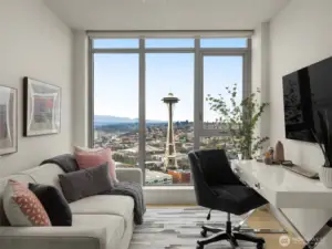 Experience the best of Seattle in this luxurious home in the heart of the city. From sunrise to epic sunsets, enjoy the rhythm of urban life in the Pacific Northwest. Be inspired by the creativity, pulse, action and energy of the neighborhood while retreating to this peaceful sanctuary of sophisticated comfort. Unit 3802 is one of the highest floors and enjoys sweeping views of the Seattle Space Needle, Elliott Bay, and the Olympic Mountains. Watch the ferries as they flow through the Puget Sound creating a postcard from Seattle through every window. The main living area is open and bathed in natural light framed by floor-to-ceiling windows. Enjoy morning coffee on private covered view balcony. 2 bedrooms + office/flex room and 2.5 bath condo. High end kitchen appliances Wake up to sound views in the spacious primary with spa-like en suite and second balcony. Insignia life is unrivaled and residents enjoy 24 hour concierge, fitness center, lap pool & sauna, yoga + pilates studio, pet play areas, and community spaces. This home includes 2 coveted premium parking spaces in the secure garage plus storage. Homes for sale near Amazon, Google, South Lake Union like this are a rare find. Stroll to the revived waterfront, Olympic Sculpture Park, Climate Pledge Arena or the Amazon Spheres. Of all the condos for sale in Downtown Seattle, this is not to be missed.
