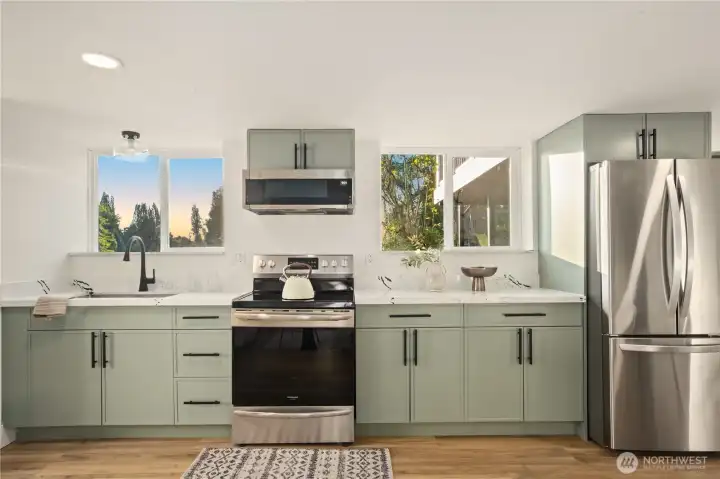 Better than new! This timeless Everett home sits on a .3-acre lot with direct views of the prestigious Legion Memorial Golf Course. The main level offers 3 bedrooms, a spacious living room w/ wood-burning fireplace, open dining, & a stylish kitchen w/ stainless steel appliances & custom cabinetry. The daylight lower level provides a fully separate living space complete w/ 2nd kitchen, great room, bedroom, bathroom, & oversized bonus room, ideal for multi-gen living, rental income, or entertaining. Step outside to a Trex deck overlooking the private, park-like yard along the 12th fairway. With ample parking, generous yards, & a convenient location near shopping, dining, and freeway access, this home is pre-inspected & move-in ready!