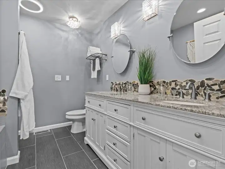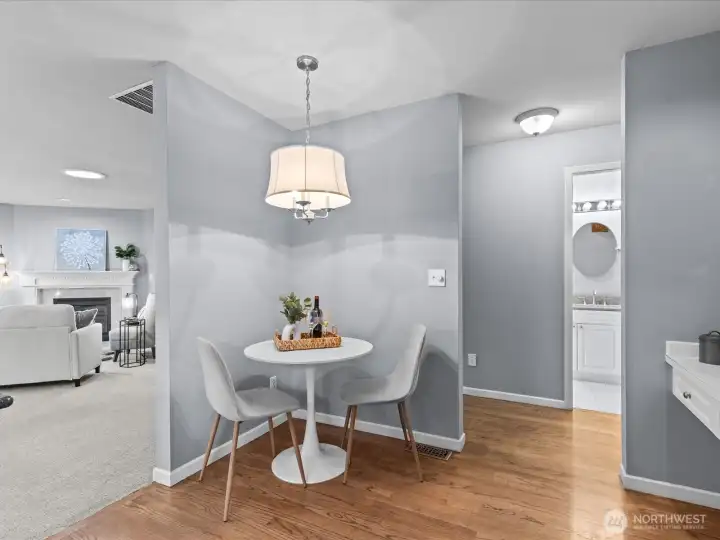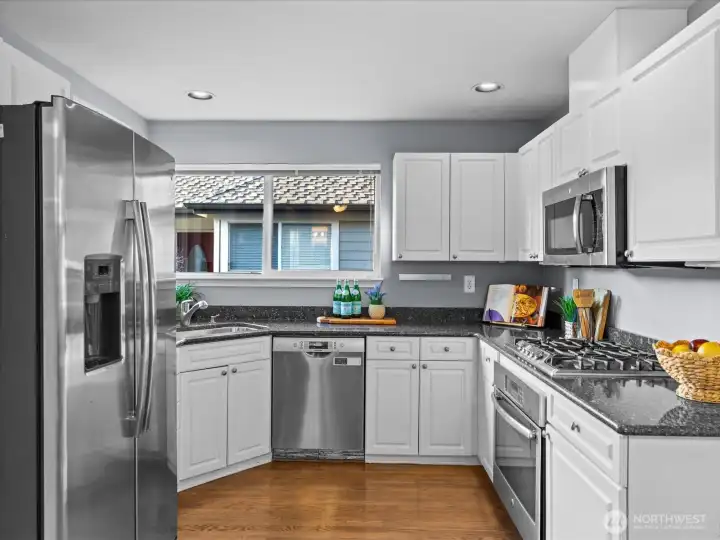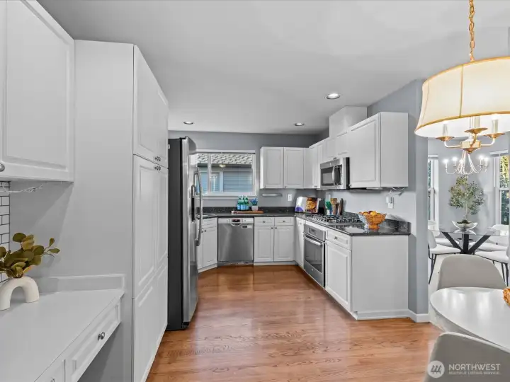 Richmond Beach ramblers are hard to find, and this one is a rare blend of comfort, function, and charm awaiting you in the gated community of Maple Knolls! Impeccably cared for, and thoughtfully updated with gleaming hardwood floors that flow into a spacious living room with a gas fireplace and adjacent dining area. Step outside to a private deck overlooking Kruckeberg Botanic Garden, ideal for relaxing or entertaining. The primary suite offers a five-piece ensuite and dual closets for added privacy and convenience. Two additional bedrooms and a full bath provide flexibility for guests, work, or hobbies. The thoughtfully designed kitchen features stainless steel appliances, a gas range, hardwood flooring, an eating nook, a message/activity center, and all appliances included. A dedicated laundry room with built-in storage leads to the two-car garage, offering even more space for organization. No steps, move-in ready and well designed, this home delivers comfort, practicality, and timeless appeal. Just a short distance to the beach and all the marine life the Puget Sound has to offer!