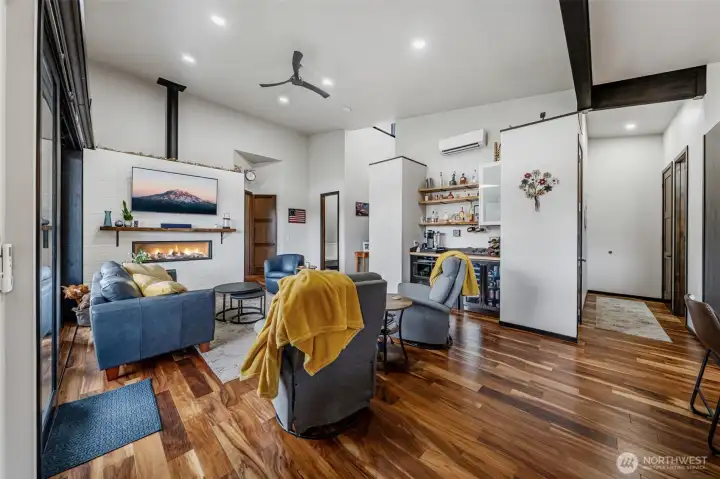 Honey, pinch me, I think I am dreaming! THIS IS IT! Step through the gorgeous entrance gate and you’ll immediately feel the privacy and presence this property offers. Perched on a gently sloped acre with jaw-dropping panoramic views of Mt. Rainier, this 2021-built rambler feels like something straight out of a luxury lifestyle magazine. Masterfully crafted with no detail overlooked, every inch of this home was designed to impress. Acacia engineered hardwood floors flow seamlessly throughout, setting the tone for the stunning finishes and thoughtful design. The living room is a showstopper, featuring a folding wall slider that completely opens the space to the outdoors—blurring the lines between inside and out and perfectly framing that magnificent mountain view. The kitchen and living spaces were built for gathering, while the lifetime metal roof adds both striking curb appeal and long-term peace of mind. Electric car plug-ins make modern living effortless. And let’s not forget the detached garage—transformed into the ultimate party cave—ideal for entertaining, hobbies, game nights, or creating the ultimate retreat. All of this on a beautiful acre with no HOA. Imagine summer gatherings where laughter spills onto the patio, cool evenings under the stars with Rainier standing guard in the background, and quiet mornings with coffee in hand as the mountain greets you. Luxury, freedom, views, and lifestyle… this isn’t just a home — it’s your dream home!