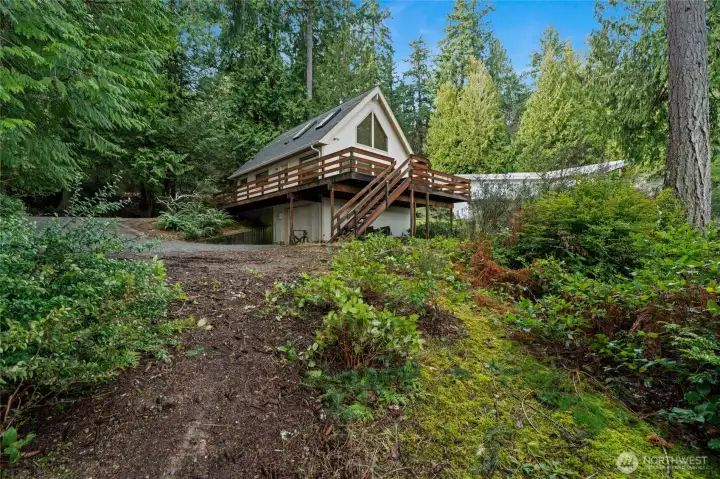 An incredible opportunity to own two truly special waterfront properties. Step back in time with vintage charm—the décor may echo the 80s and 90s, but the views and beach are timeless. First time on the market, this property features two homes perched above Mayo Cove, overlooking Carr Inlet, views of Mt. Rainier and approximately 180 feet of waterfront. Walk down the gently sloped path to skip rocks, swim or relax. Boaters paradise & right around the corner from Penrose State Park. Ideal for your own staycation, multi-generational living, or living in one home while renting the other. Very quiet, removed from the city noise but conveniently located just 12 minutes from Key Center and 30 minutes to North Gig Harbor. The main home, an A-frame design, approx. 2110 sq. ft. offers two bedrooms. The main level features an open-concept living and kitchen area, a bedroom, and a full bath, with the second bedroom located upstairs. The fully finished basement includes two bonus rooms, a ¾ bath with laundry, and access to the one-car garage. The detached, approx. 1101 sq. ft. ADU lives large & offers one bedroom, a full bath, and main-level living, plus a generously sized bonus room and an additional bath upstairs. Unfinished room perfect for shop or dry storage & 1 car attached garage. With just over an acre, the possibilities are endless—ample room for raised garden beds, lush green grass, or keep as is and simply let nature take its course. Welcome to the beach.