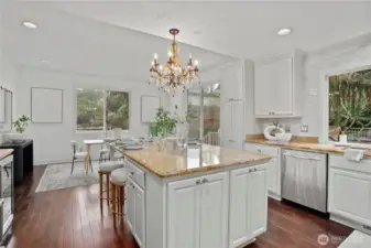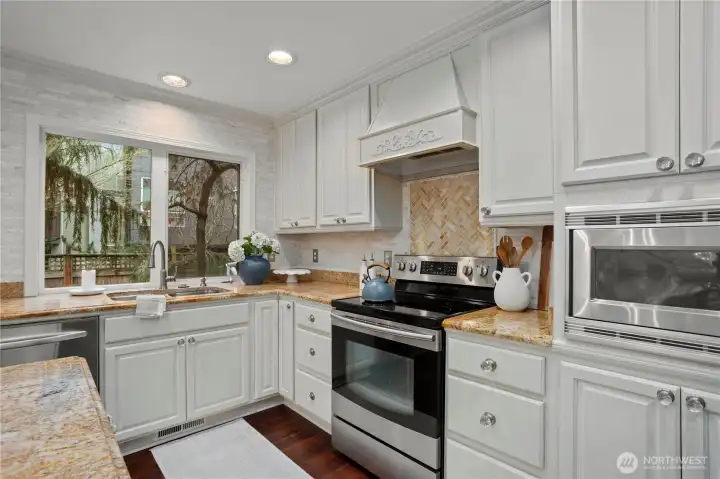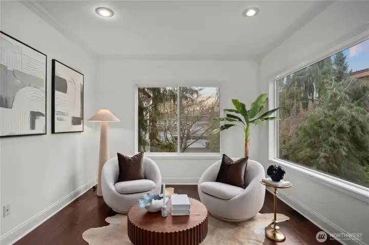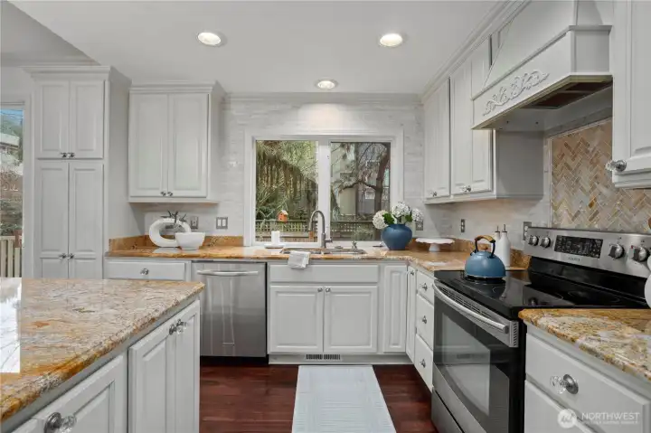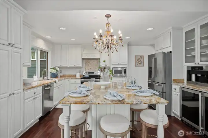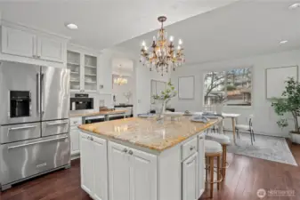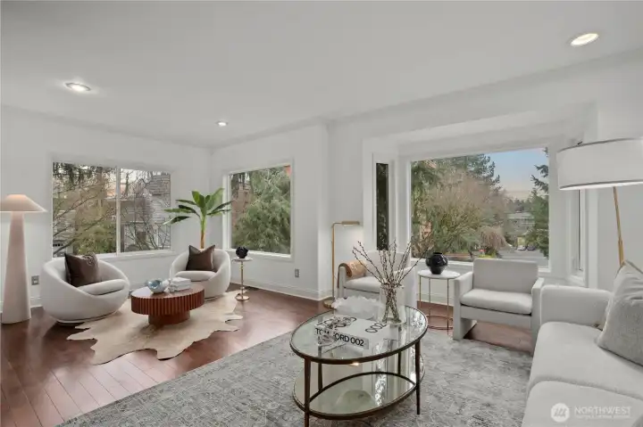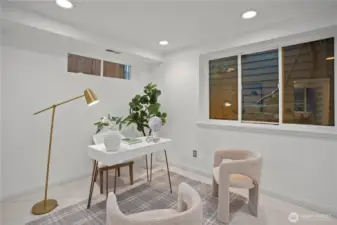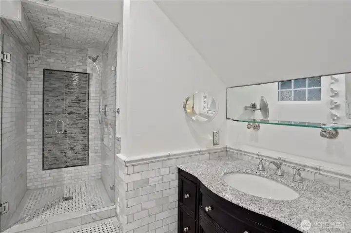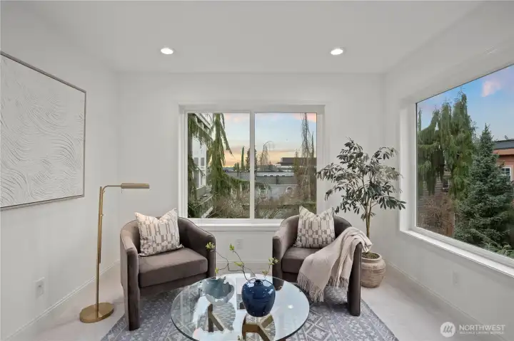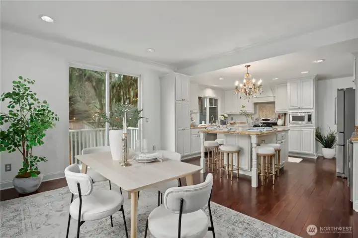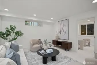 Located in the heart of Downtown Kirkland, this home welcomes you with a bright and open layout, perfect for modern living. The main floor features a stunning chef's kitchen with beautiful shaker cabinetry, granite countertops, stainless steel appliances, a wine fridge, and an expansive center island - perfect for entertaining. A formal dining area provides space for memorable meals, while a cozy gas fireplace elegantly defines the living and family rooms, creating both warmth and flow throughout the space. Upstairs, the primary suite is a private retreat, complete with a large 5-piece ensuite bath, including a relaxing soaking tub, and an oversized walk-in closet. Both the primary bath and the lower level bath feature heated floors, adding a touch of everyday luxury and comfort - especially on cool mornings. Two additional bedrooms, a full bathroom, and a convenient laundry room complete the upper level. The recreation level offers a media/game room perfect for movie nights, a 3/4 bath, and an additional bedroom that can double as a home office or creative space. Step outside to the rooftop deck and take in stunning west-facing views - perfect for quiet mornings with coffee. All this is located in the coveted Lake Washington School District, just moments from shopping, dining, and the vibrant downtown Kirkland waterfront.
