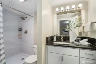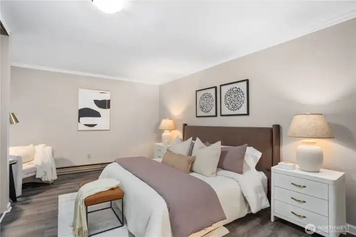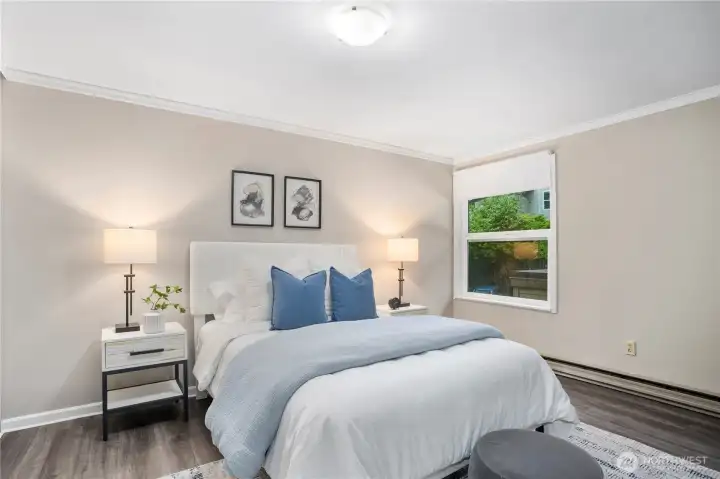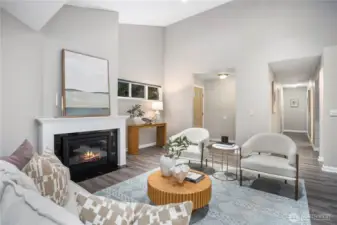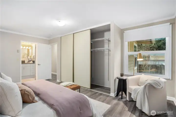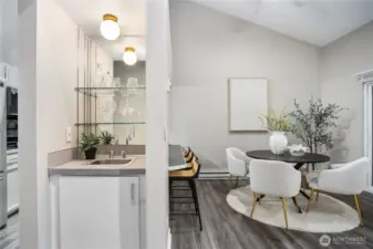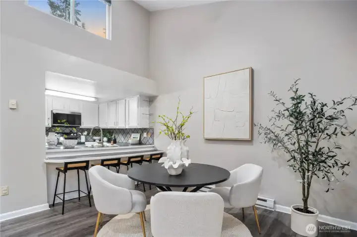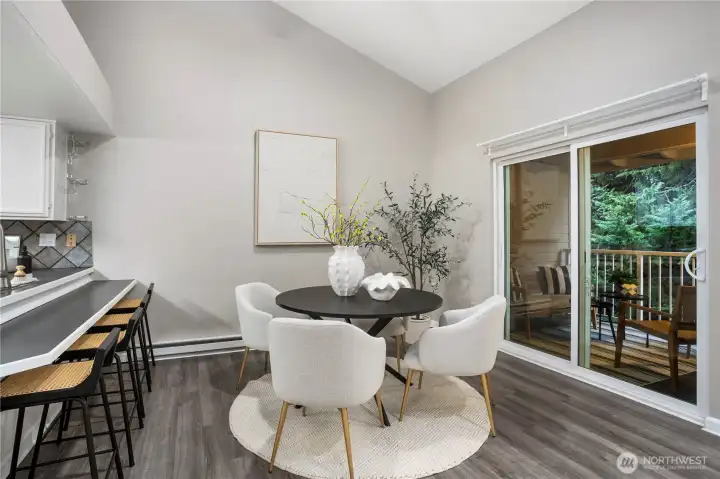 Welcome home to this beautifully updated top-floor unit, flooded with natural light and modern finishes throughout! Enjoy vaulted ceilings, a cozy wood-burning fireplace, and a wet bar - the perfect entertainer’s space. The open-concept layout features a kitchen with stainless steel appliances and bar-top seating, flowing seamlessly to your private balcony, ideal for enjoying summer evenings and relaxing outdoors. Set within the peaceful, tree-lined community of Forest Glade, this home offers a truly tranquil and private retreat. Offering 2 spacious bedrooms, including an expansive primary with a fully updated en-suite bath, and an additional oversized bedroom, with plenty of storage space throughout. The guest bathroom is also updated and perfect for a relaxing soak after a long day. Take advantage of resort-style amenities, including a clubhouse and gated outdoor pool, all while being ideally located with easy access to major campuses like Microsoft, Google, and Amazon. Enjoy easy walking access to the newly renovated Microsoft campus and the light rail station, making commuting a breeze. Golf enthusiasts will love being just minutes from the Bellevue Golf Course. Close to shopping, dining, and entertainment, this home truly has it all!