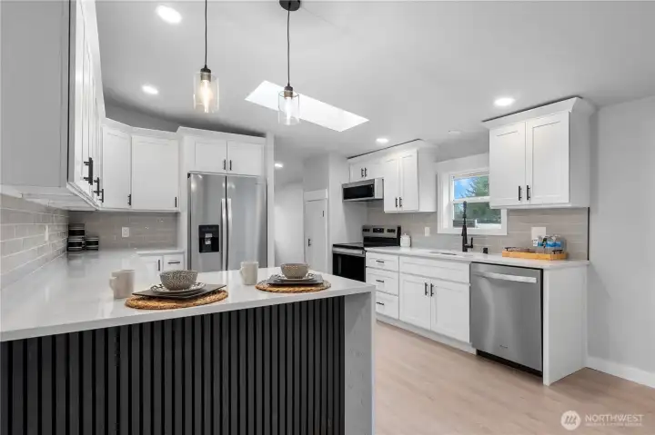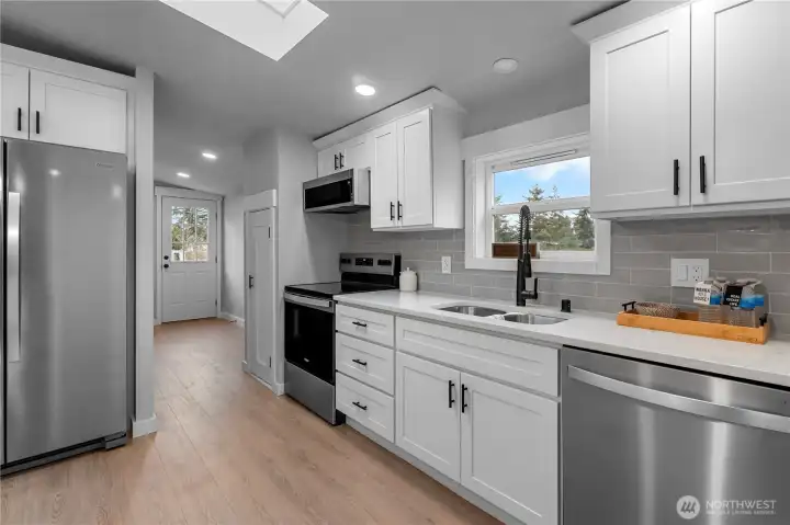 Fully updated 1568 sq foot home featuring custom finishes on over an acre of level land. Enjoy the charming covered front porch and a newly constructed back porch. The attractive, well-designed kitchen offers Whirlpool appliances, quartz countertops, fresh cabinetry and abundant storage space. Just beyond the generously sized laundry room can be easily accesed from back door making it ideally located. The inviting family room features soundboard walls, vaulted ceilings, and plentiful natural light & plenty of space to customize with your furniture.The functional split-bedroom layout showcases gorgeous custom tile work, stylish countertops, and modern fixtures throughout. All bedrooms include walk-in closets offering abundant storage space. A newly installed metal carport provides covered parking, along with a shed for yard equipment. Conveniently located close to local amenities and I-5 for easy north or south commuting. Move-in ready and thoughtfully updated. --This home offers comfort, space, and value. Don't miss your chance to view this property!