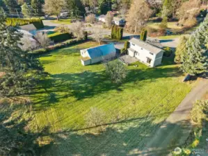 Welcome to this peaceful Snohomish retreat with 3 bedrooms plus den and 2 baths, offering rare space, privacy, and versatility in a quiet neighborhood. Filled with natural light, the home provides comfortable living with efficient zone heating, A/C on main level, and a thoughtfully designed layout. The kitchen features engineered bamboo flooring, blending warmth and durability for everyday living and entertaining. Set on expansive grounds, the property truly shines outdoors. A loop-style gravel driveway provides ample parking for RVs, boats, and tons of parking. Enjoy abundant space for recreation, biking, and gatherings, along with fruit-bearing cherry and plum trees and rich soil ideal for gardening. A large barn with shop area and storage shelving adds outstanding flexibility for hobbies, storage, or workspace needs. Plenty of space for potential of ADU up to 1,200 sq ft (buyer to verify). Centrally located with convenient access to Highway 9, Mill Creek, downtown Snohomish, and Woodinville. A rare combination of tranquility, space, and location. No HOA!!