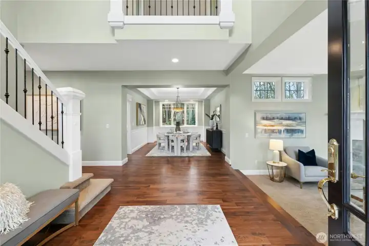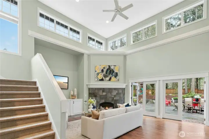 Stunning Street of Dreams home nestled in a private, secure, gated community in coveted Chapel Grove just minutes from Woodinville Wine country. Experience the epitome of luxury living in this magnificent home, recently remodeled featuring 4,080 sq ft. of living space, 4 beds, 4 baths, bonus room & den on a shy acre lot. Enter to a grand vaulted entry, luxurious details including beautiful bay windows, exquisite millwork & tray ceilings in both the living & dining rooms, & a lovely stained glass bay window seat. Soaring 2 story ceilings in the great room create an open & inviting layout & abundant natural light. The main level offers gorgeous walnut hardwood floors, a gourmet kitchen with beautiful granite countertops, center island, double ovens, ample cabinetry & walk in pantry. The kitchen seamlessly connects both the dining room & great room making it ideal for both daily living and entertaining. An ample closet within the main level office allows this room to function as a main level bedroom, if desired. Dual staircases lead you to the spacious & cozy primary suite complete with a gas fireplace & newly remodeled primary bath. French doors open to a fabulous outdoor living space complete with a spacious patio, firepit, putting green & plenty of room to play, fully fenced & includes a sprinkler system. The oversized 3-car garage offers abundant space for parking, storage & an EV charger. Heat pump, security system & generator. Highly acclaimed Northshore School District!