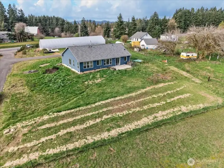 Beautifully built one-level home on 1.74 acres in Castle Rock, offering the perfect blend of comfort, space, and small-farm living. This 4-bedroom, 2-bath home features 2,699 sq. ft., a 3-car garage with charging station, A/C, double water heaters, leathered black pebble granite countertops, and a double-wall catalytic converter woodstove for efficient warmth. Designed for a true lifestyle property, the grounds include a 3,600 sq. ft. commercial automated high tunnel/grow tunnel with double 6 mil poly walls, along with a large chicken coop and established plantings already in place. Current crops include 2,500 garlic plants, 400 raspberries, 55 olive trees, 55 table grape vines, and fruit trees such as persimmon, apple, pear, gooseberry, pomegranate, and elderberry. There is also possible additional dwelling unit potential, offering even more flexibility for future use. Enjoy the opportunity to live, grow, and garden on a beautiful property with room to expand your vision.