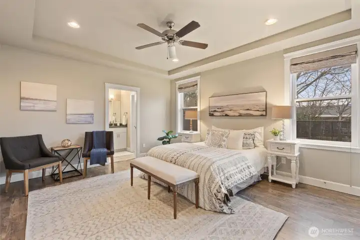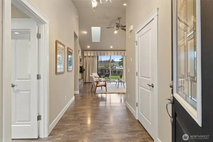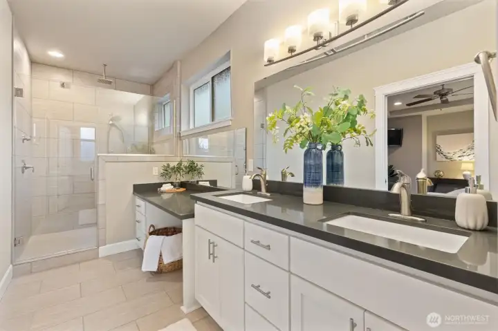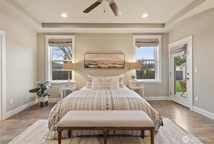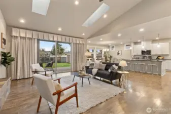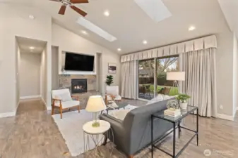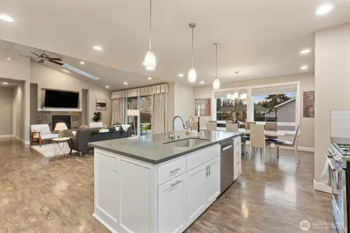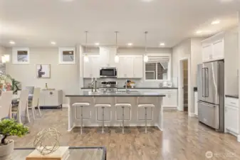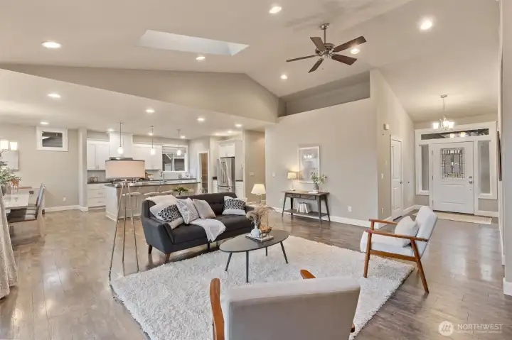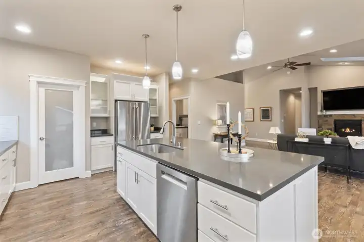 Gorgeous, like-new single-story home in the gated Camaloch Golf community on North Camano Island. This home features a spacious open-concept kitchen, dining, and living area with soaring vaulted ceilings—perfect for everyday living and entertaining.The chef’s kitchen offers quartz countertops, stainless steel appliances, a walk-in pantry, and ample workspace. The home includes three generous bedrooms, highlighted by a luxurious primary suite with a spa-inspired five-piece bath and walk-in closet. A large, light-filled home office provides excellent flexibility for remote work, or guests.Additional features include a large laundry room, oversized 2 car garage with room for a golf cart, and a fully fenced, sunny backyard with a storage shed—ideal for gardening and outdoor enjoyment. Residents enjoy year-round golf, two community pools, a park, and a scenic community lake—all within this sought-after neighborhood.