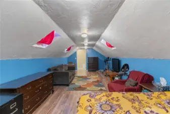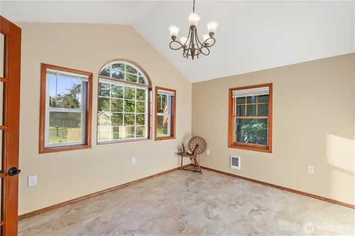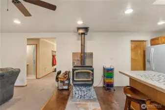 Located in desirable SE Ocean Shores, this inviting 4-bedroom, 2.75-bath home with a 3-car garage offers a well-planned layout with comfortable living spaces and flexible functionality. Just inside, a private office with French doors provides an ideal space for remote work or quiet focus. The home opens into a warm and welcoming family room, highlighted by a wood-burning fireplace, creating a cozy gathering space that connects seamlessly to the kitchen and dining area. The kitchen is designed for both everyday living and entertaining, featuring an island, updated appliances, and a temperature-controlled walk-in pantry. The primary floor also includes a convenient 3/4 bath and a dedicated laundry room. The main-floor primary suite offers LVP flooring, a walk-in closet, and an en suite bath. Upstairs includes a study nook above the stairs, a full bathroom, two additional bedrooms, and a finished extra bedroom with skylights above the garage, offering abundant natural light and versatile use. Outside, enjoy two separate entrance decks, a fully fenced yard, raised flower beds, covered wood storage, and multiple utility storage areas, making this home as practical as it is inviting.