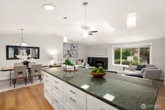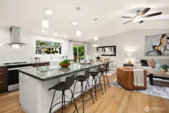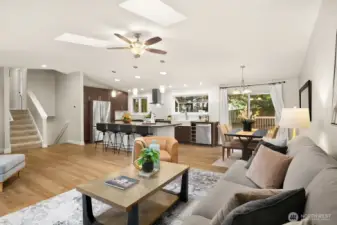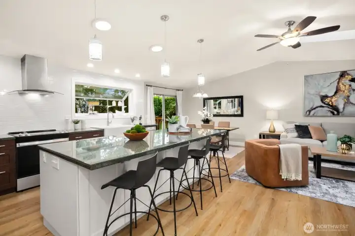 Imagine…pulling into your 2-car garage & arriving home to a quiet Fairwood Greens cul-de-sac, where bikes are ridden, neighbors wave, & everyone looks out for one another. Inside, the open living room, kitchen, and dining space—with brand-new flooring— everyday life feels easy, from homework at the large kitchen island to dinner at the dining room table. Evenings turn into game nights & weekend gatherings that spill onto the large deck & into the backyard. After the littles are in bed, you unwind in the hot tub, then retreat to the newly remodeled, spa-like primary bathroom to end the day. With solar panels, highly regarded Kent schools, & a welcoming golf course community, this house truly feels like home. Can you imagine living here?