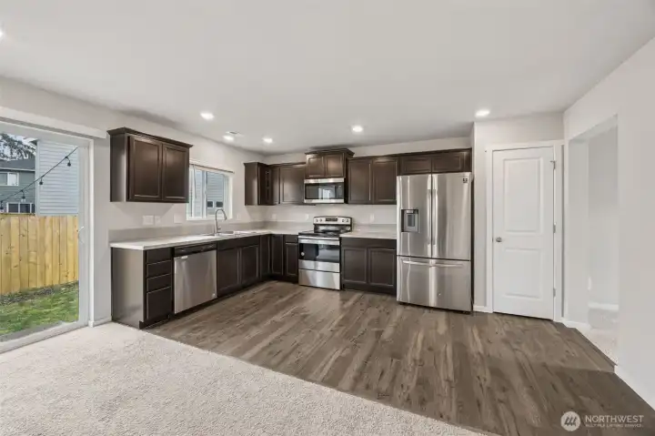Welcome home to the Lipoma Firs community where comfort, efficiency, and everyday convenience align! This well-maintained home features owned solar panels, helping you save on energy costs while enjoying modern living. Inside, the thoughtfully designed kitchen features laminate countertops, a spacious pantry, and stainless-steel appliances that convey, all flowing seamlessly into a warm and inviting living area. The downstairs flex room also provides an additional living, flex or office space. Faux wood blinds throughout add a clean, cohesive look, while the main-floor laundry room with washer and dryer that convey- adds convenience to your daily routine. The spacious primary suite boasts a large walk-in closet and a private ¾ bath. Two additional guest bedrooms and full bathroom provide additional flexibility. The fully fenced backyard offers the perfect space for pets, play, or outdoor entertaining, and the 2-car garage provides ample storage and parking. Located near large community parks and within the sought-after Puyallup School District.