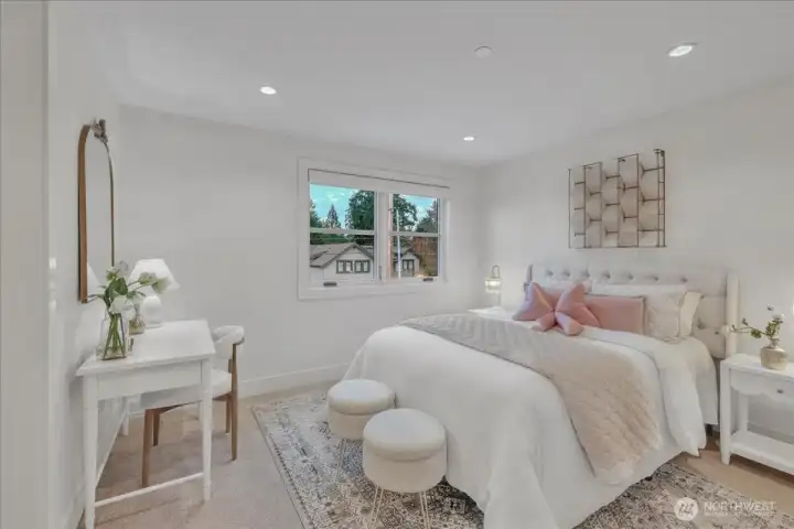Custom-built by Bordner Construction in October 2022, this modern, minimalistic home blends luxury and comfort in Medina. A dramatic entry opens to light-filled living spaces with Lutron smart lighting and refined finishes throughout. The chef’s kitchen features custom cabinetry, quartz countertops, high-end appliances, and a butler’s pantry. The main level includes a bedroom that can also serve as an office. Upstairs, the owner’s suite offers a fireplace, balcony, dual closets, and spa bath. The lower level features a media room, wine cellar, and guest suite. Enjoy a flat backyard with covered patio, outdoor kitchen, and heaters—just minutes from Bellevue, dining, parks, and top-rated schools.