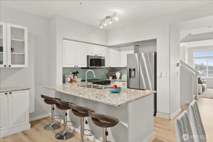 Ready to move in, spectacular views of Tiger, Squak, & Cougar Mountain await you at The Heights! This tastefully updated 3-bed / 2 bath townhouse features brand new wide plank hardwood throughout the house, white cabinetry in the kitchen & dining area, slab granite counters, a newer gas water heater, and a beautifully remodeled Primary Bathroom. All 3 bedrooms are located on the upper floor! With Southern exposure, the home is filled with natural light year-round. Don't miss the 2-car tandem garage w/ storage + 1 exterior space, and a spacious patio area out back. Fully-Funded HOA ($1,5M+ in Reserves) & All-New Building Exterior (2012). Minutes to award-winning Issaquah Schools, Parks & Trails, and Commuter Amenities. No rental cap. Minimum lease length is 30 days. Great for STR. Pets Ok. Resale certificate and inspection report are available. Use Condo P & S Double listing #247110