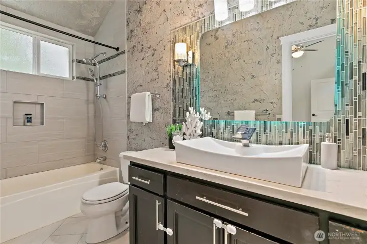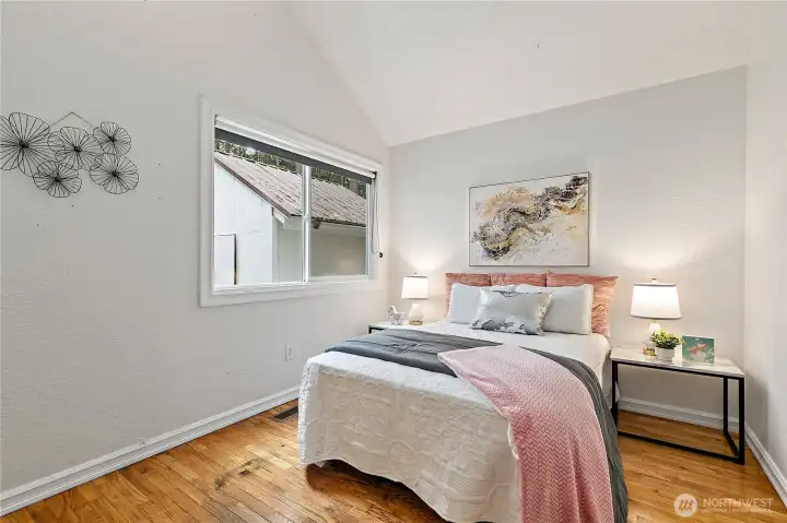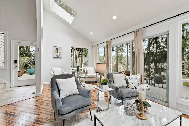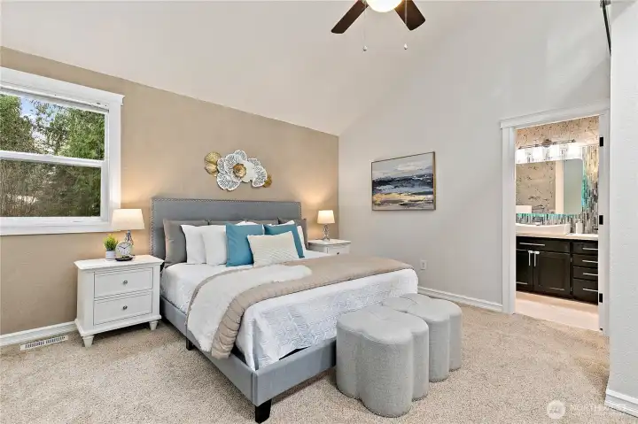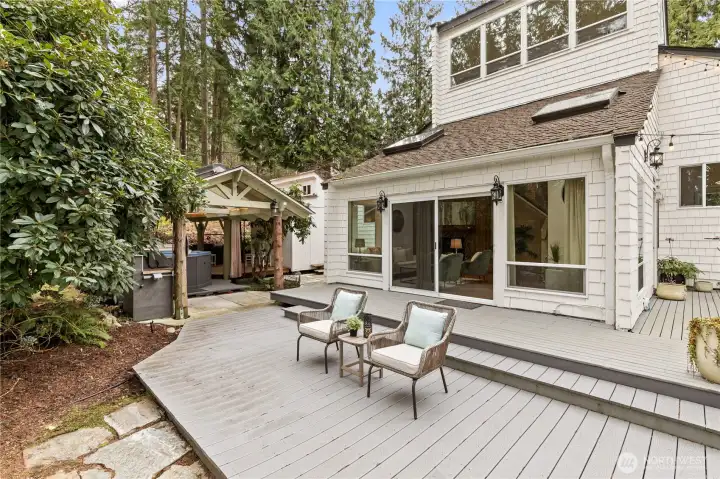 Tucked away in a peaceful Newcastle setting, this single-family home offers a rare sense of calm with stunning views of Lake Boren and surrounding territorial scenery. Mature trees and lush greenery create a serene, retreat-like atmosphere, while expansive windows invite natural light and frame the ever-changing beauty of the water and landscape. The thoughtfully designed interior features vaulted ceilings, skylights, a cozy gas fireplace, air conditioning, and heated tile floors for year-round comfort. The kitchen showcases sleek modern acrylic cabinetry, and an upstairs bonus loft with a walk-in closet offers additional flexibility along with a captivating water view. Step outside to an impressive outdoor oasis complete with a jacuzzi, outdoor shower, gas grill, and multiple powered storage sheds—ideal for relaxation or entertaining. Additional highlights include trail access, summer bonfire space, and onsite RV parking. Conveniently located near parks, trails, shopping, dining, medical services, the library, and Lake Boren Park, with easy access to Bellevue, Renton, and major freeways. This is a rare opportunity to enjoy lake-view living in one of Newcastle’s most desirable neighborhoods. Mortgage savings may be available for buyers of this listing.