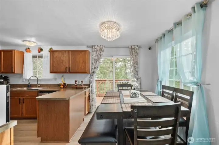 Tucked in a quiet cul-de-sac on a private .38-acre lot, this welcoming 3-bedroom, 2-bath home blends comfort, space, and sought-after amenities. Enjoy peek-a-boo Hood Canal views from the deck—perfect for morning coffee or evening relaxation. Thoughtful updates shine inside and out, including durable, stylish LVP flooring throughout and HardiePlank siding (2019) for lasting curb appeal. The bright kitchen features warm oak cabinetry and all appliances included, opening to a spacious living room ideal for everyday living and entertaining. Two bedrooms and a full bath are located upstairs, while the generous primary suite offers its own full bath and walk-in closet. The large lower-level rec room provides flexible space for hobbies, media, guests, or a home office. Outdoor living is just as appealing with a deck, fenced backyard, attached shed for extra storage, and plenty of parking. Residents of Beards Cove enjoy fantastic community amenities, including a heated outdoor pool, community center, playground, and a waterfront park with boat launch, picnic areas, and sports court—ideal for kayaking and paddleboarding on Hood Canal. Conveniently located near town, shopping, schools, parks, and Highway 3, with easy access to the Amazon fulfillment center, airport, naval base, and shipyard. A wonderful combination of location, updates, and lifestyle!