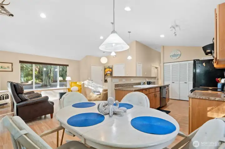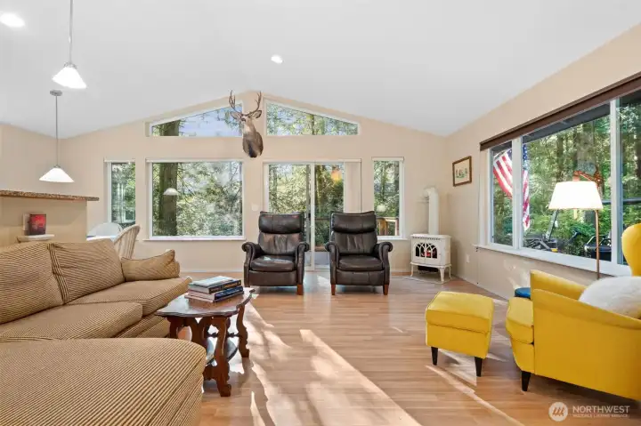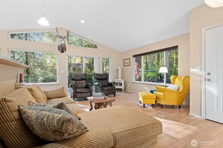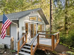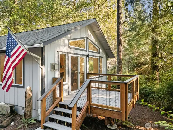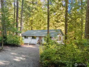 Nestled among the trees in the gated, waterfront community of Hartstene Pointe, this charming one-level home offers peaceful island living with resort-style amenities. The open living and kitchen area features a cozy propane stove, perfect for relaxed evenings. Take in the natural surroundings from the newly constructed decks—ideal for entertaining or unwinding in privacy. The spacious primary bedroom includes an en-suite ¾ bath with flexible layout potential. An additional bedroom and full guest bath too. A large crawlspace provides ample storage for toys, tools, and outdoor gear. Hartstene Pointe is known for its exceptional lifestyle, offering miles of private saltwater beaches and scenic walking trails, a marina and boat launch, lagoon and spit, clubhouse, pool, fitness center, tennis and sport courts, covered picnic areas, fire pits, and community patrol. Enjoy the quiet of the woods with easy access to beach trails and community amenities just moments away—an ideal full-time residence or vacation retreat. Home to be sold fully furnished.
