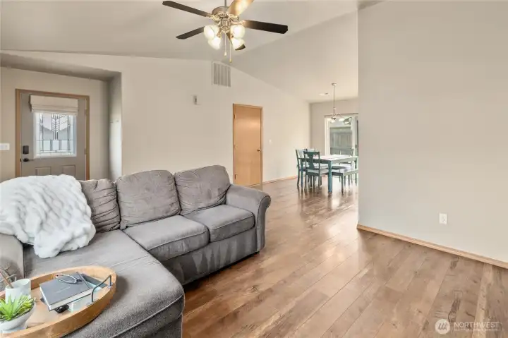 This well-cared-for single-story home offers comfortable living and has had just one owner. Inside, vaulted ceilings make the living and dining areas feel bright and open, while new flooring and custom blinds give the space a fresh, updated look. The kitchen’s peninsula is perfect for quick meals or chatting with friends, and the separate laundry area keeps things convenient. Three bedrooms include a primary suite with its own private bath, offering a nice retreat at the end of the day. Beyond the interior, the home sits on a level lot in a welcoming neighborhood with sidewalks. The fully fenced backyard provides privacy and room to enjoy two patios, along with a garden/storage shed for added utility. A two-car garage provides ample parking and storage, and a new furnace installed in 2021 highlights the home’s well-maintained systems. This move-in-ready property blends comfort, functionality, and pride of ownership.